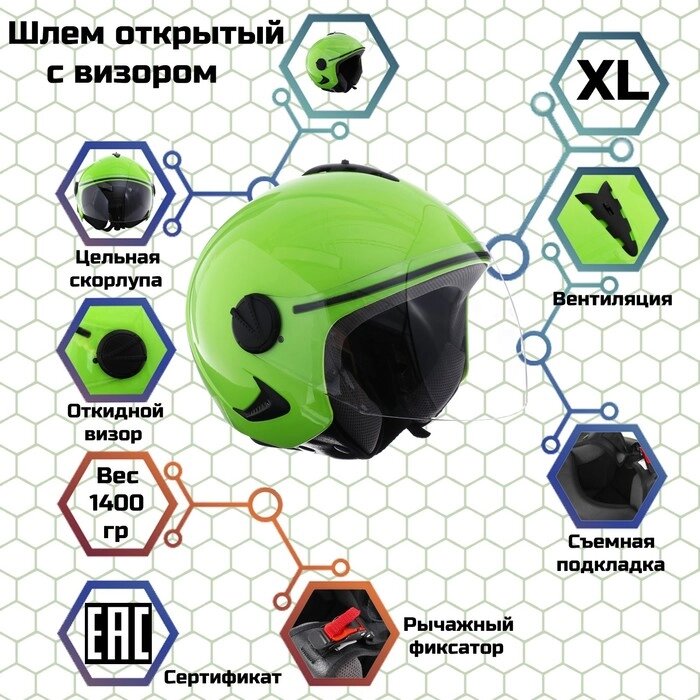 Шлем открытый с визором, зеленый, размер XL, OF635