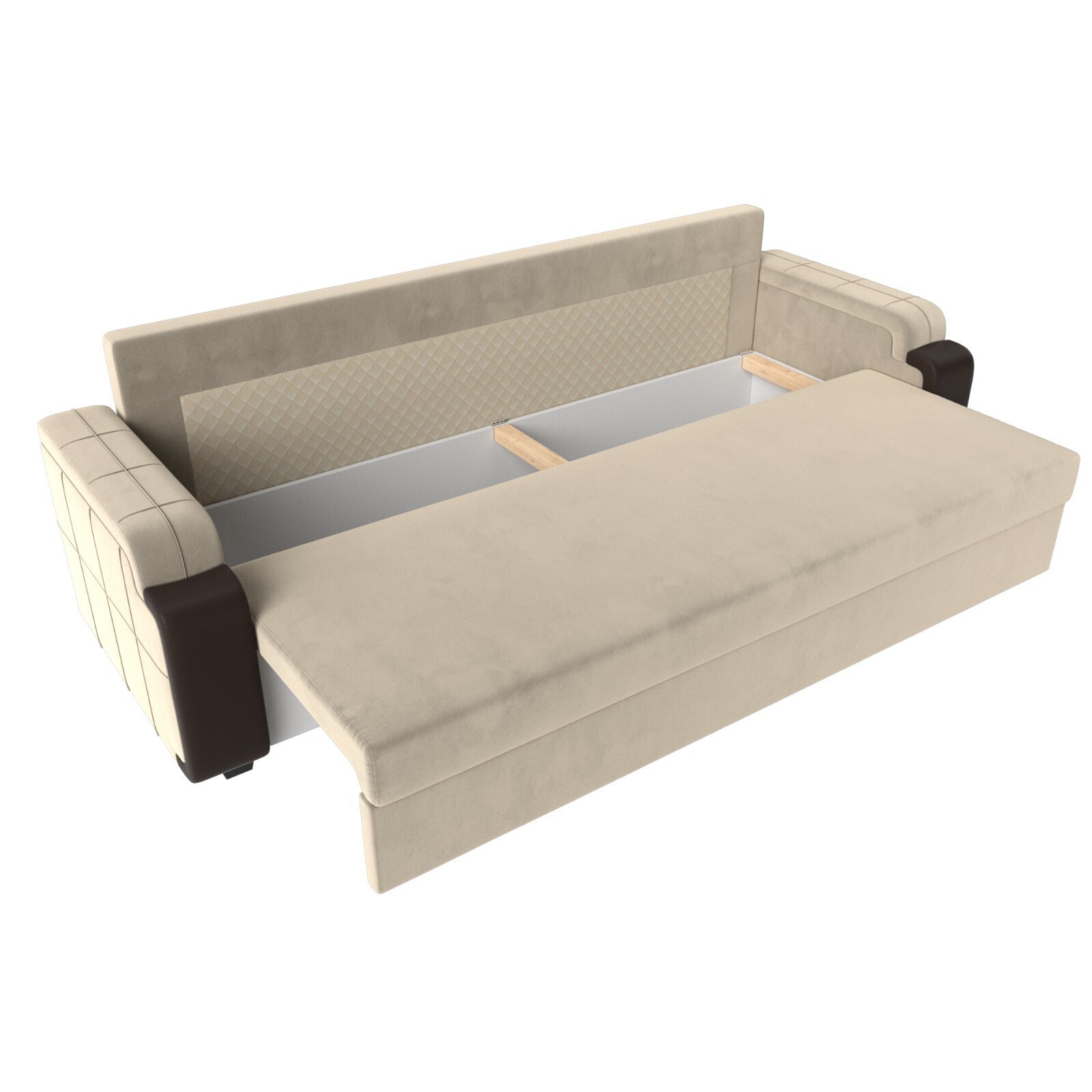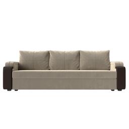 Прямой диван «Николь лайт», еврокнижка, микровельвет / экокожа, цвет бежевый / коричневый