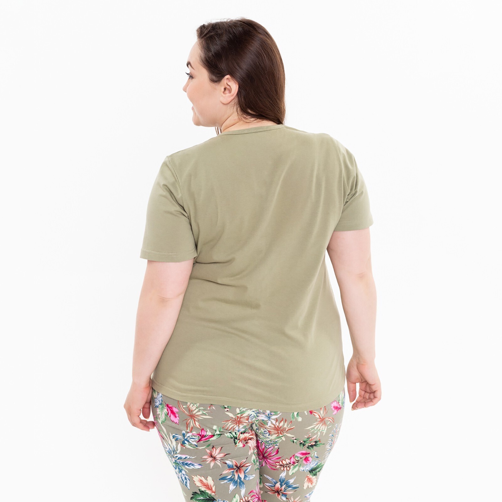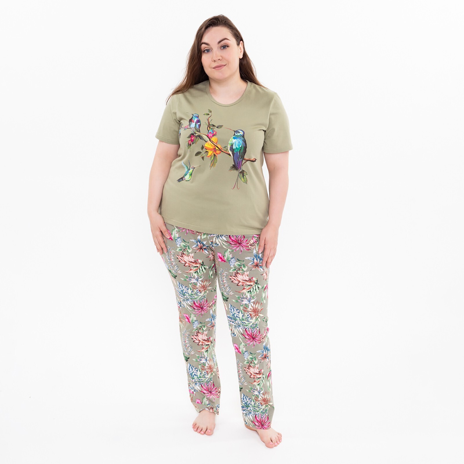 Комплект домашний женский (футболка и брюки), цвет хаки, размер 50