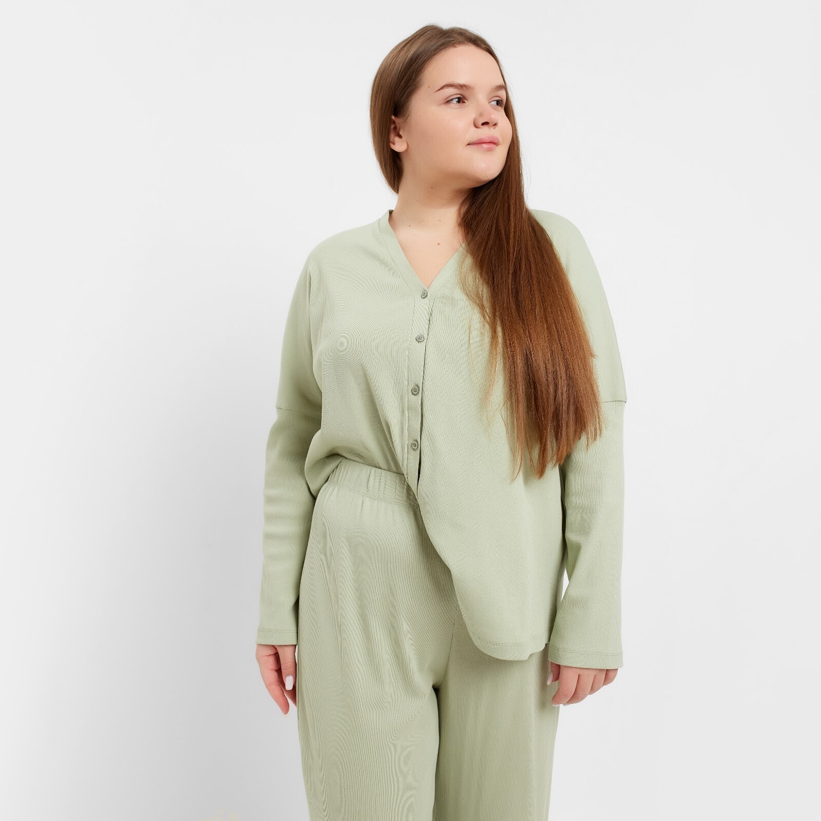 Комплект домашний женский (жакет/брюки), цвет шалфей, размер 46
