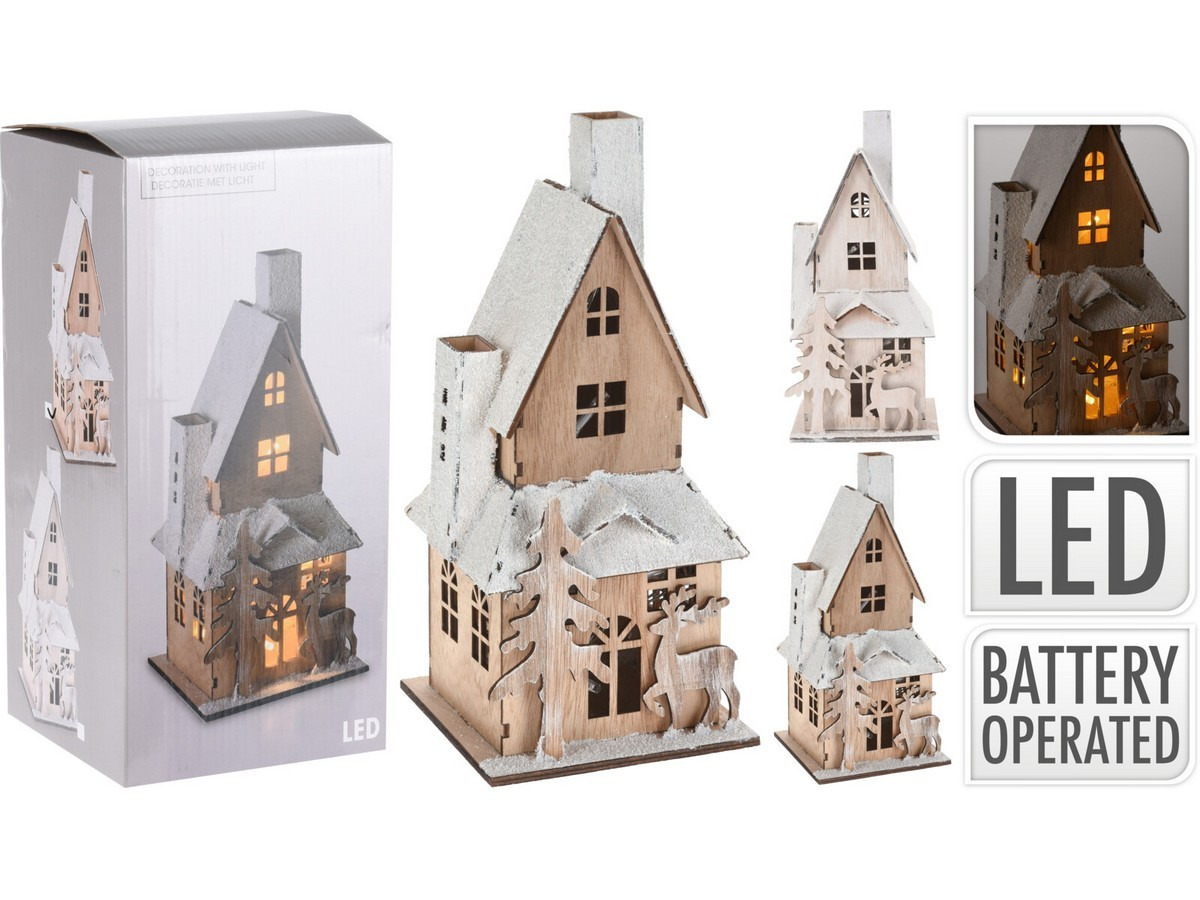 УКРАШЕНИЕ НОВОГОДНЕЕ деревянное светящееся “Домик” 9*9*20,5 см (код 355055) (работает от батареек)