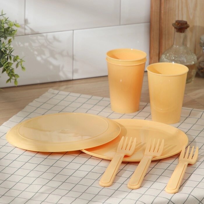 Набор для пикника 9 предметов, цвет бледно-желтый