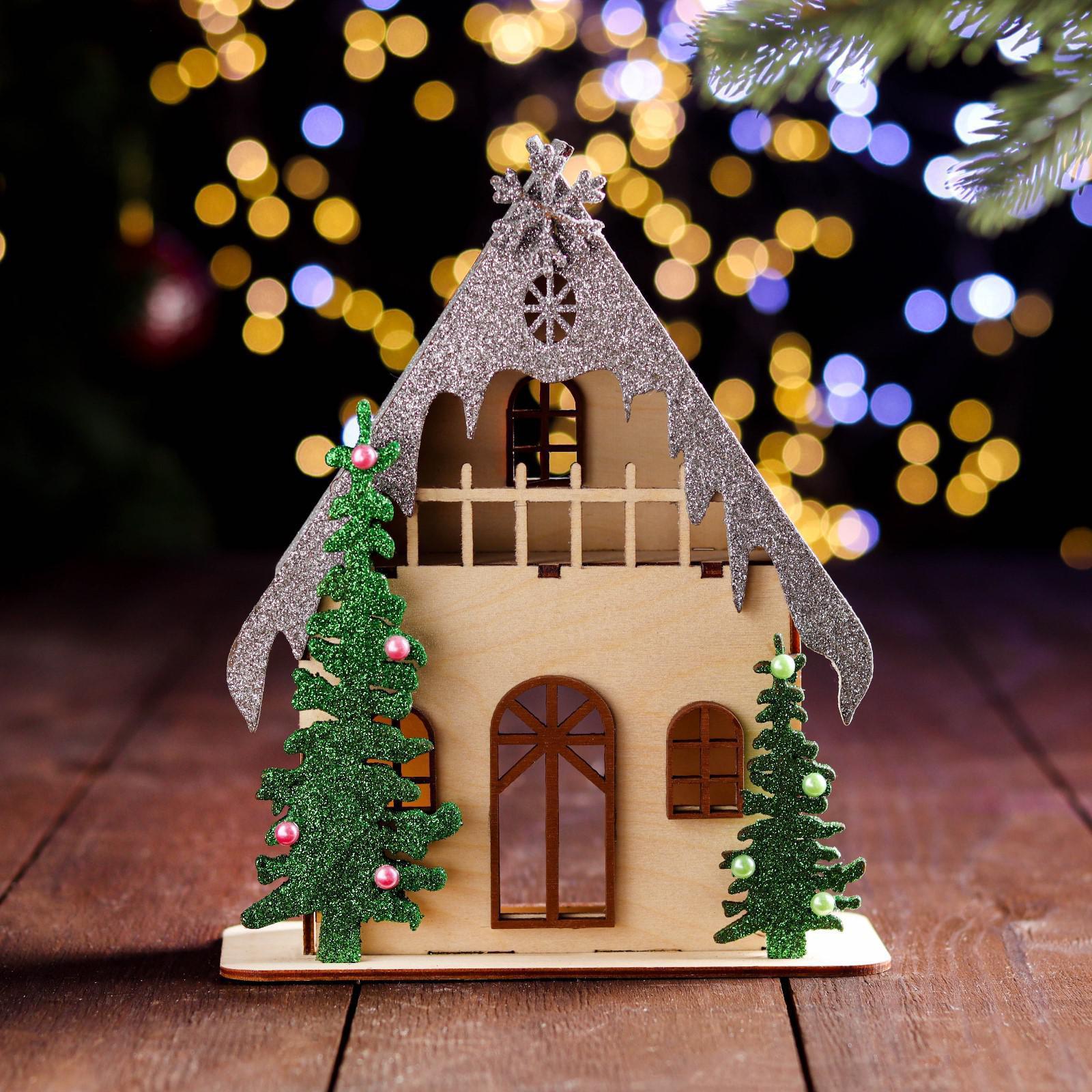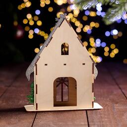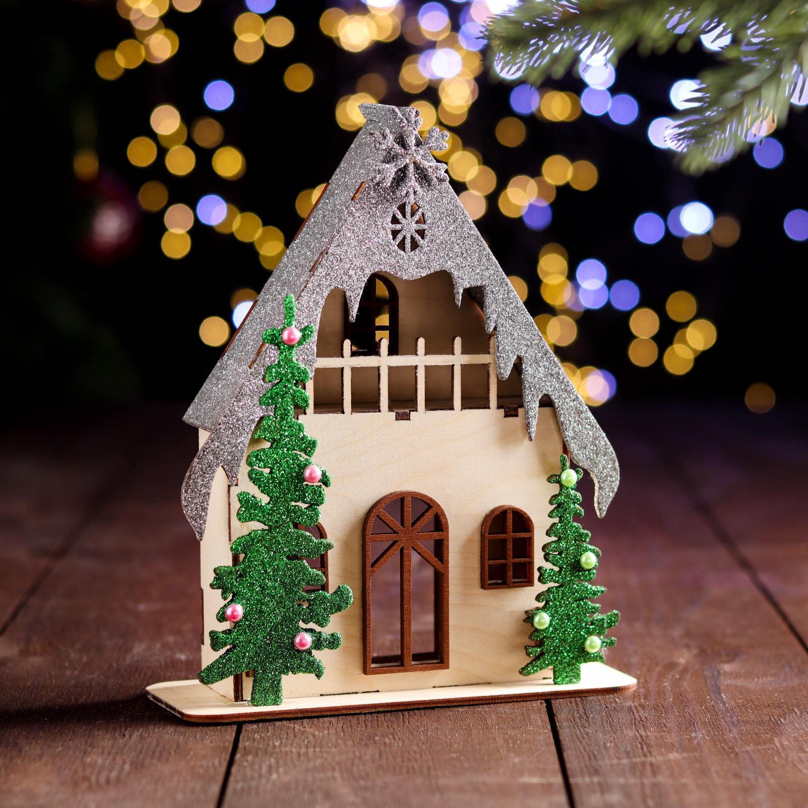 Сувенир "Домик новогодний", фанера, глиттер, микс