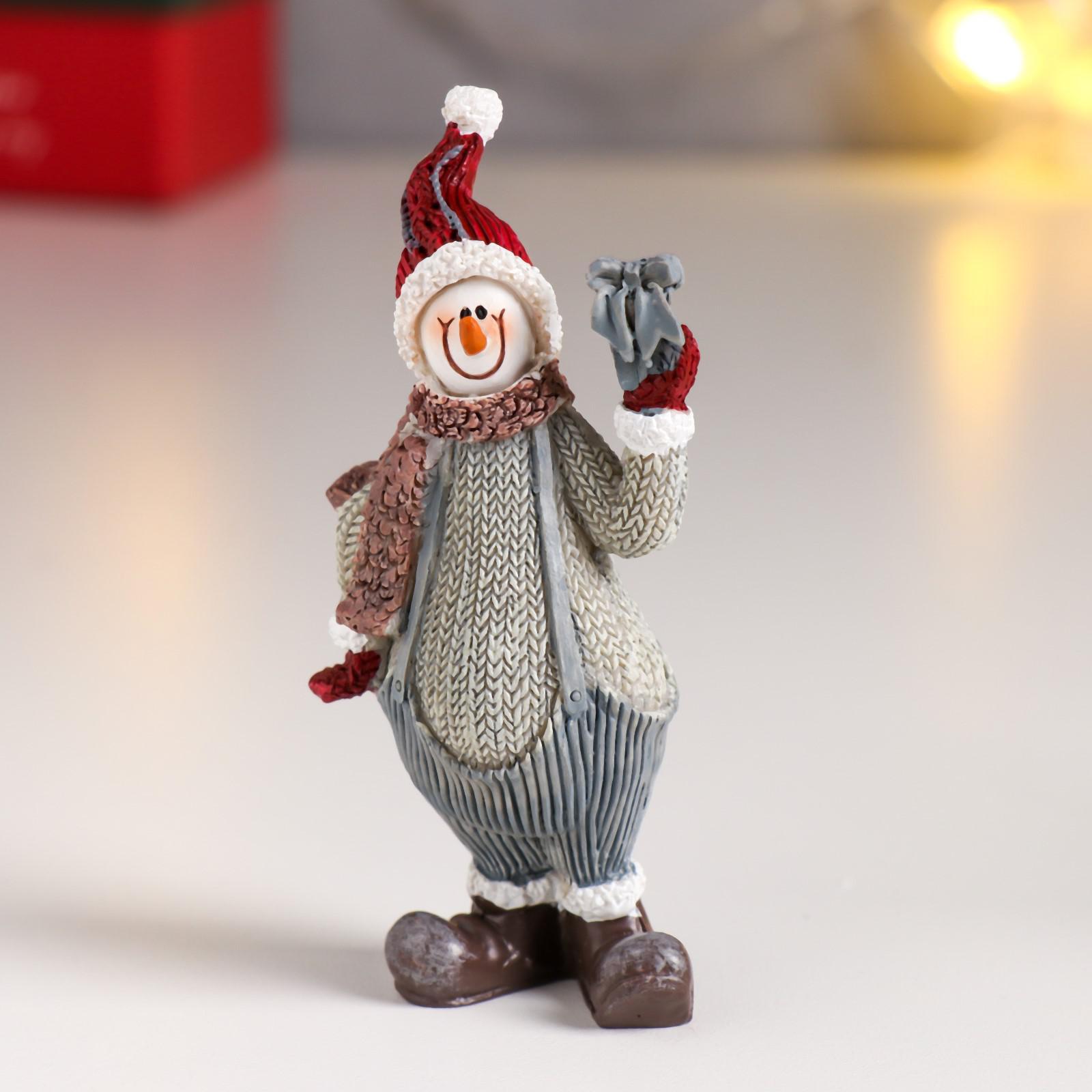 Сувенир полистоун "Снеговик в вязанном наряде и шапке-колпаке" МИКС 9,3х4,3х2,5 см