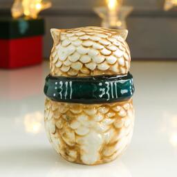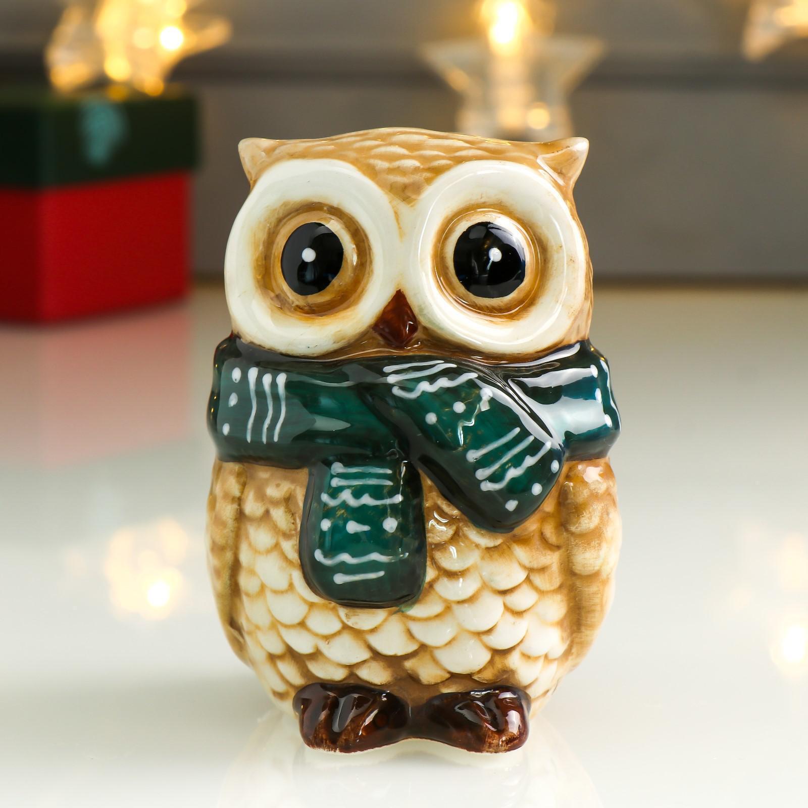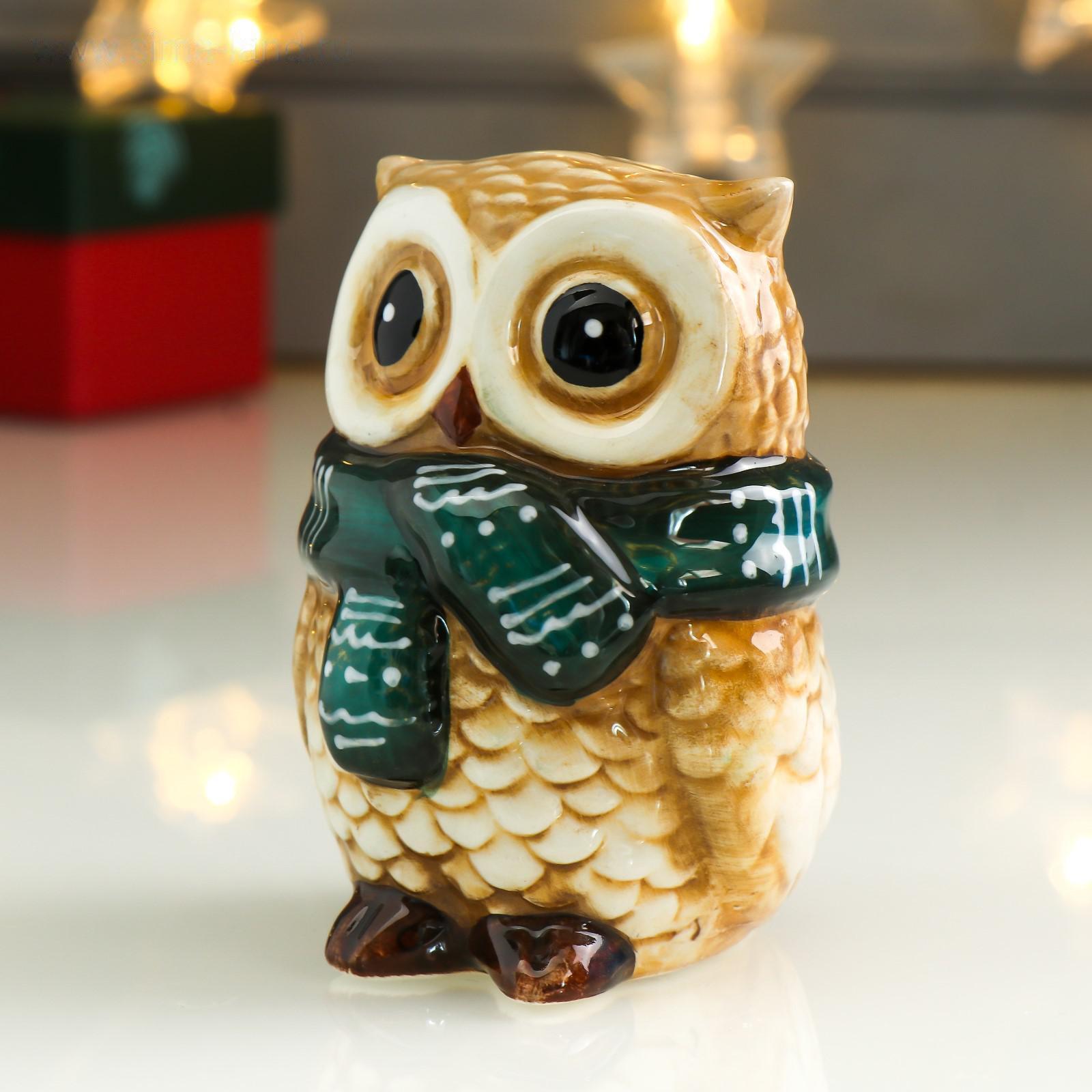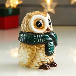 Сувенир керамика "Филин в зелёном вязаном шарфе" 9,5х7,1х6,5 см