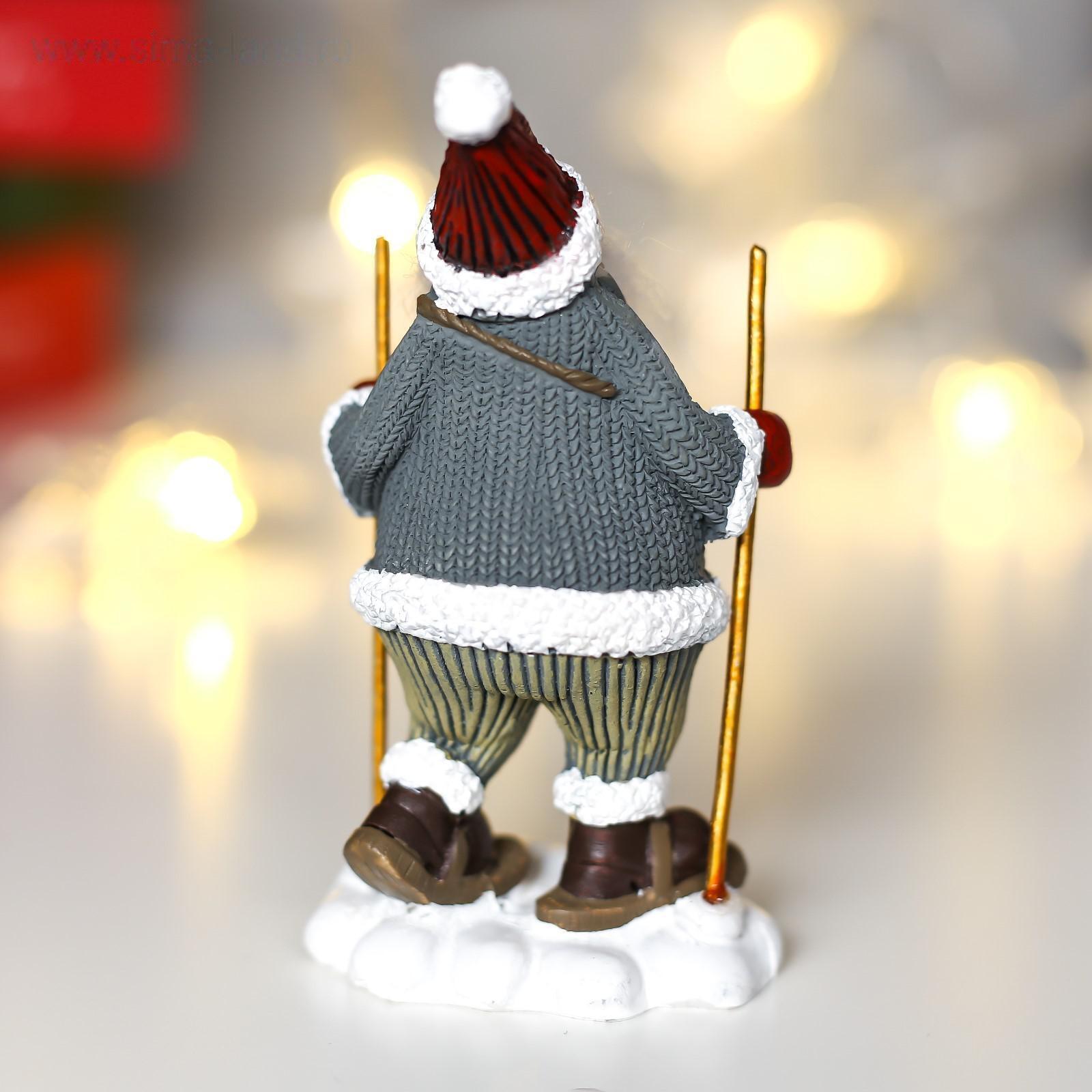 Сувенир полистоун "Дед Мороз с длинной бородой, на лыжах" 10,5х5,5х4 см