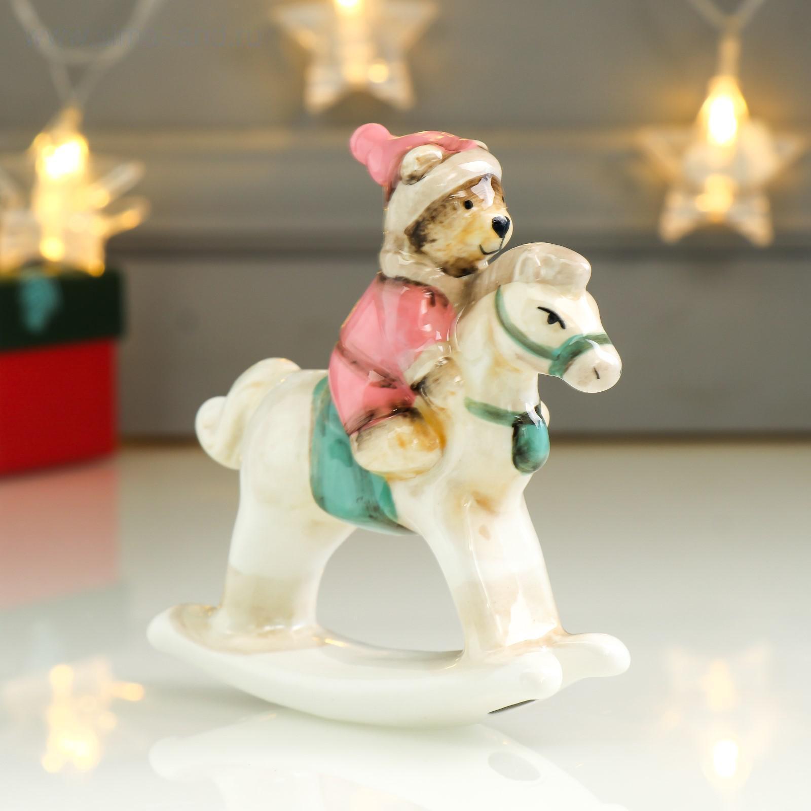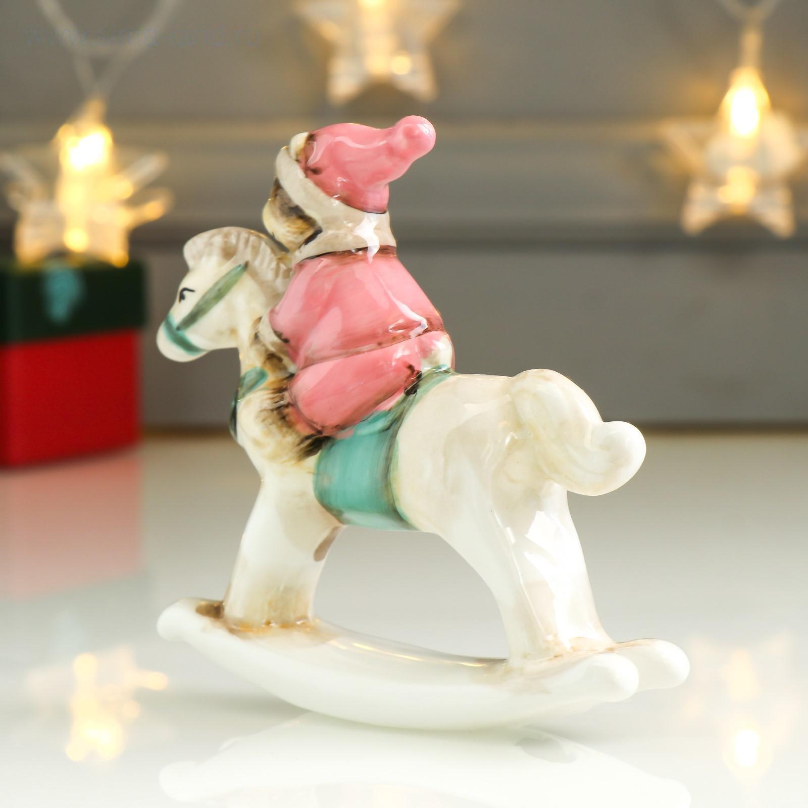Сувенир керамика "Медвежонок в розовом наряде на лошадке-качалке" 11,5х3х10,6 см