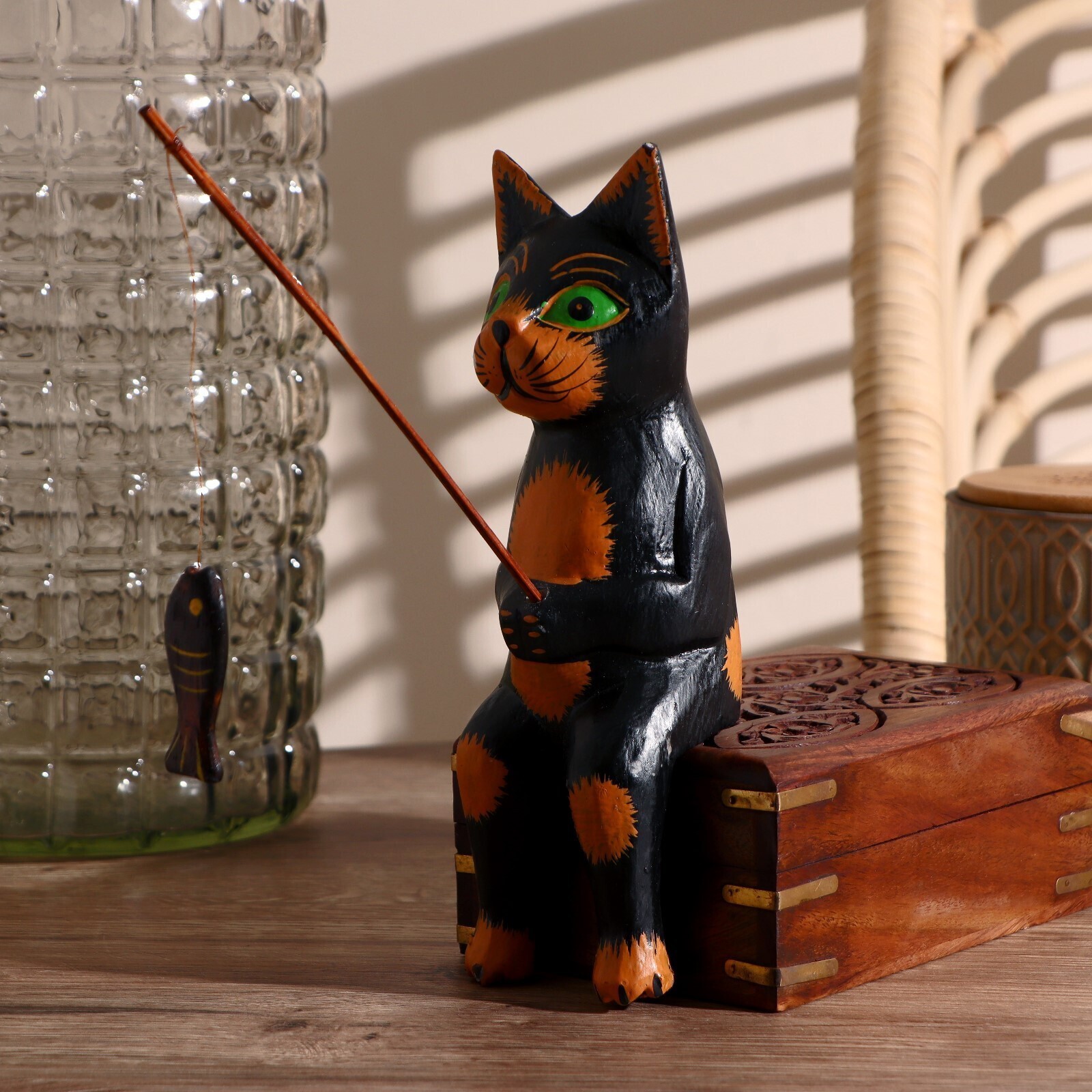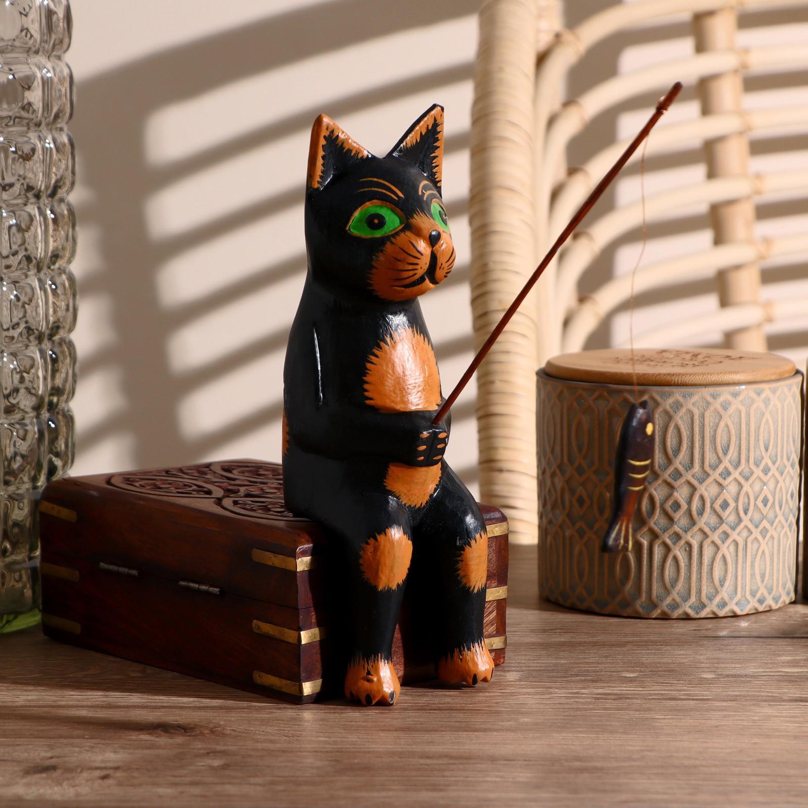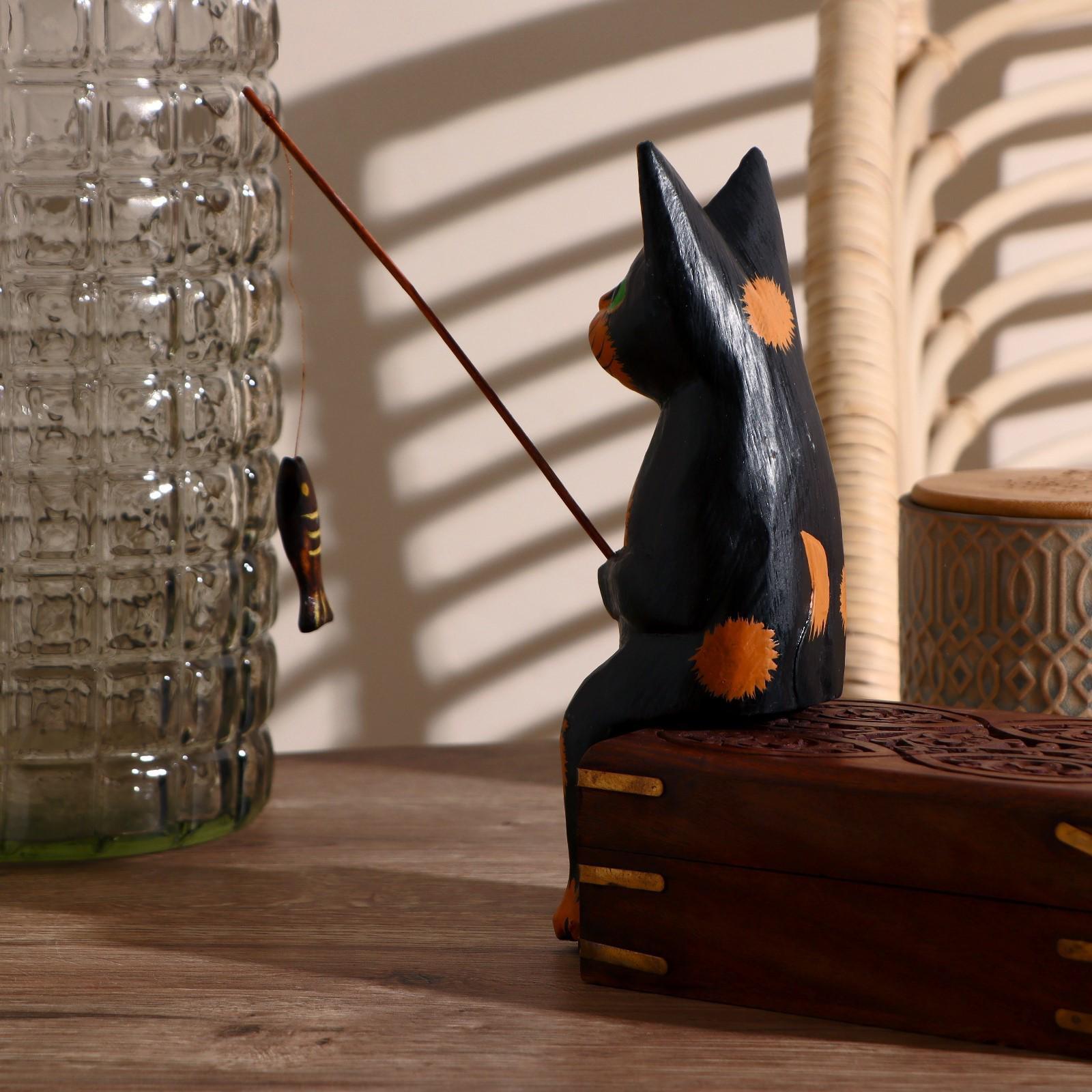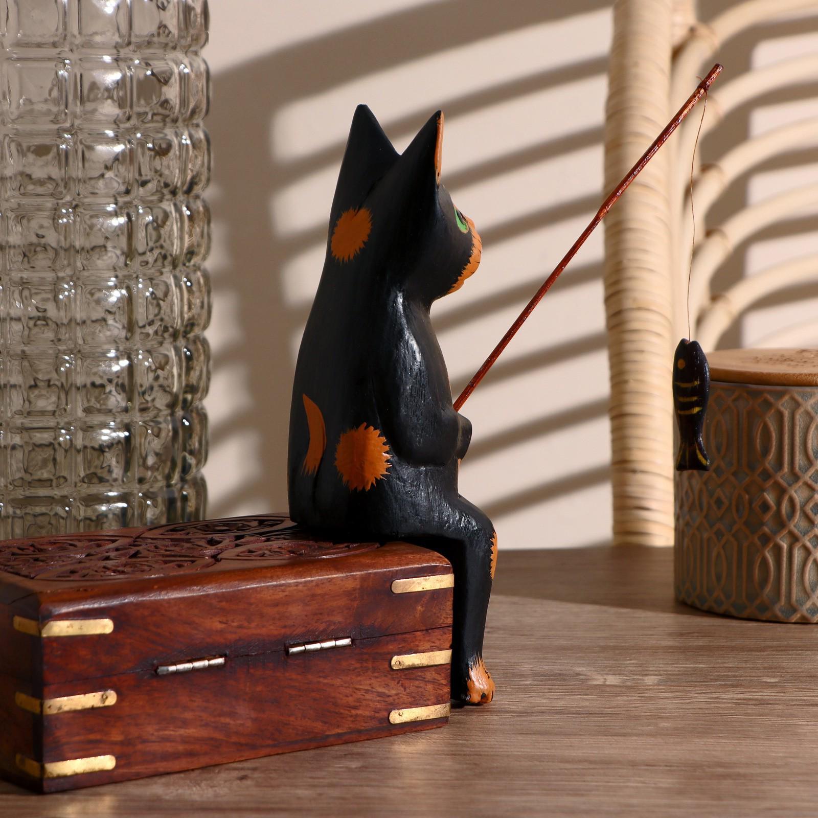 Интерьерный сувенир "Кот рыбак" чёрный 20 см