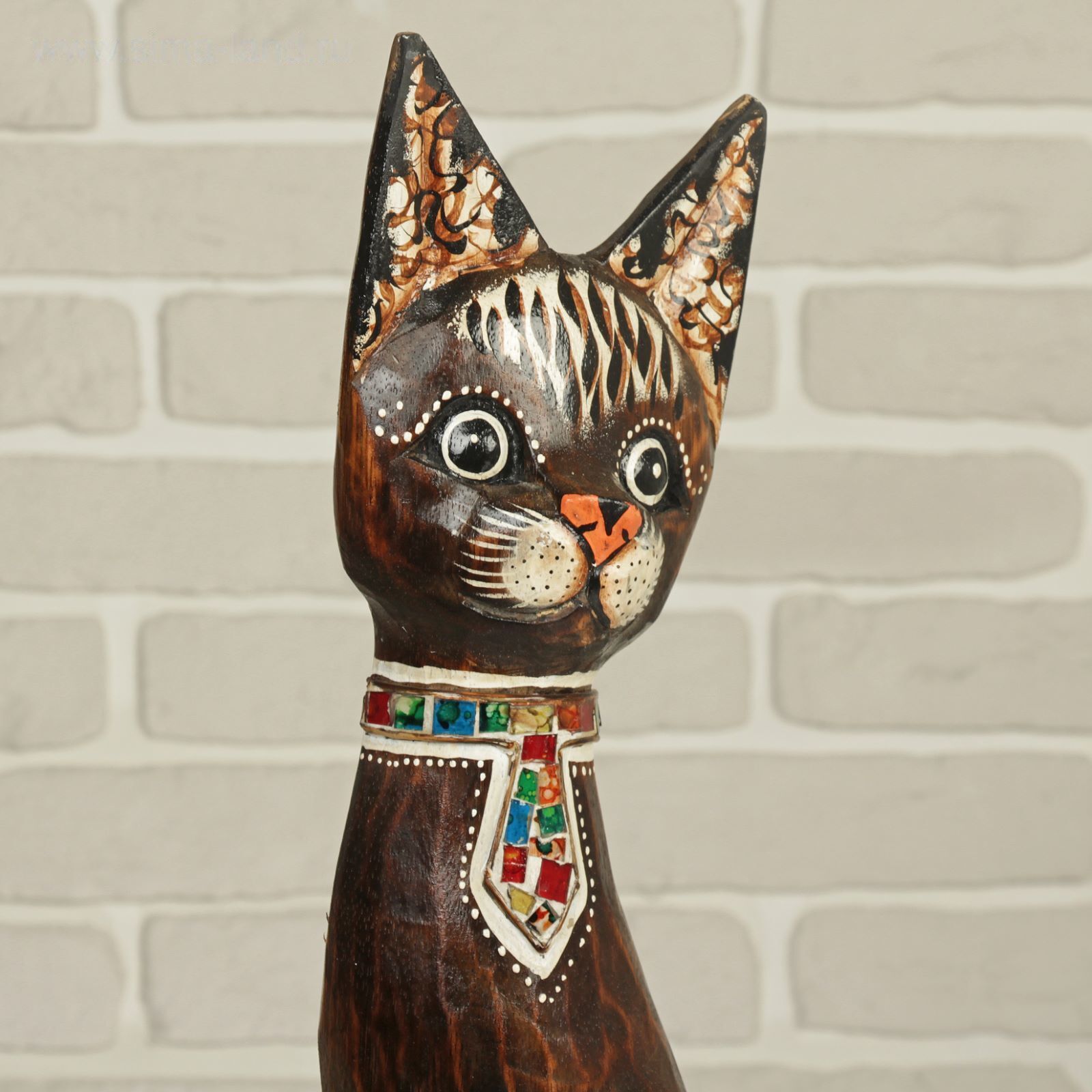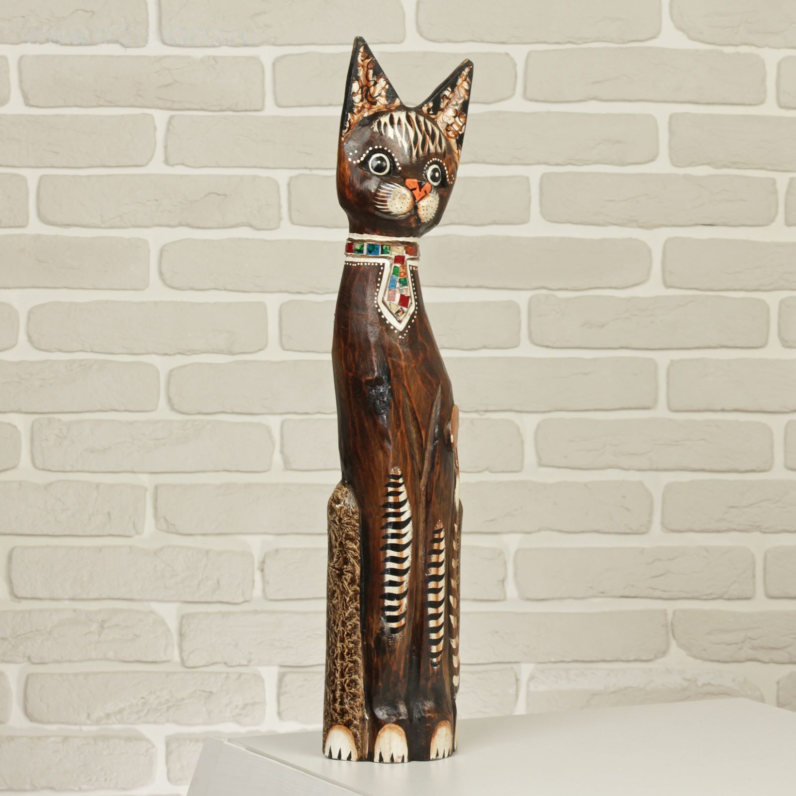 Сувенир дерево "Кошка в галстуке из мозаики" 60х12х6 см