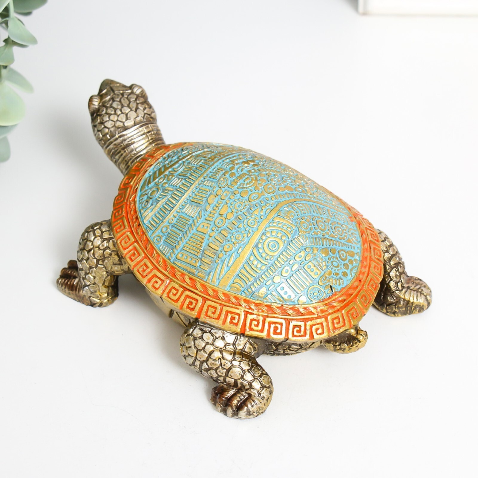 Сувенир полистоун "Черепаха сухопутная"узоры на цветном панцире 10,5х10,5х5,5 см