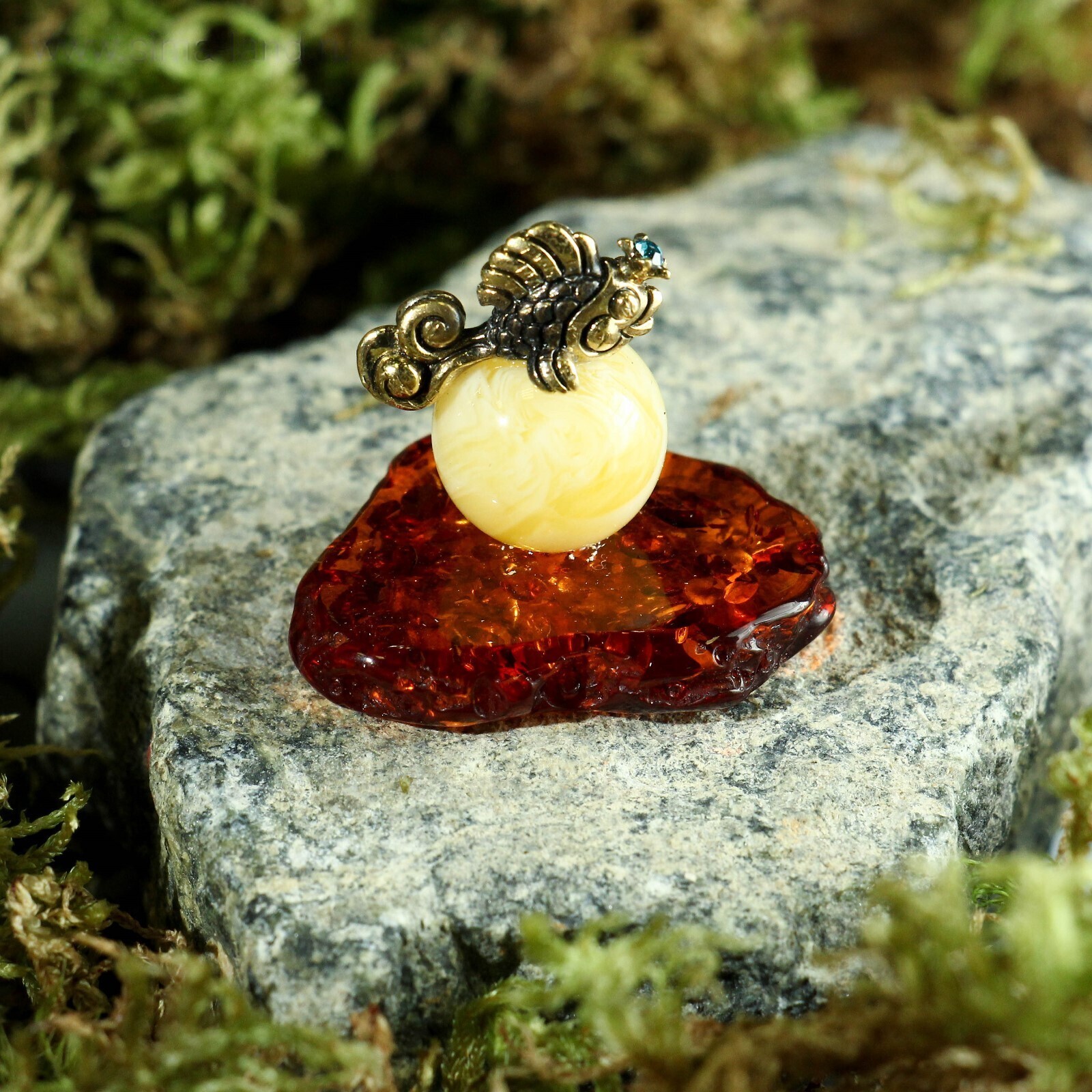 Сувенир выполнен из натуральных материалов вручную калининградскими мастерами-ремесленниками. В нём благородная латунь и тёплый солнечный янтарь необыкновенно и красиво сочетаются между собой. Такое изделие приятно получить в подарок или просто приобрести для себя любимого.