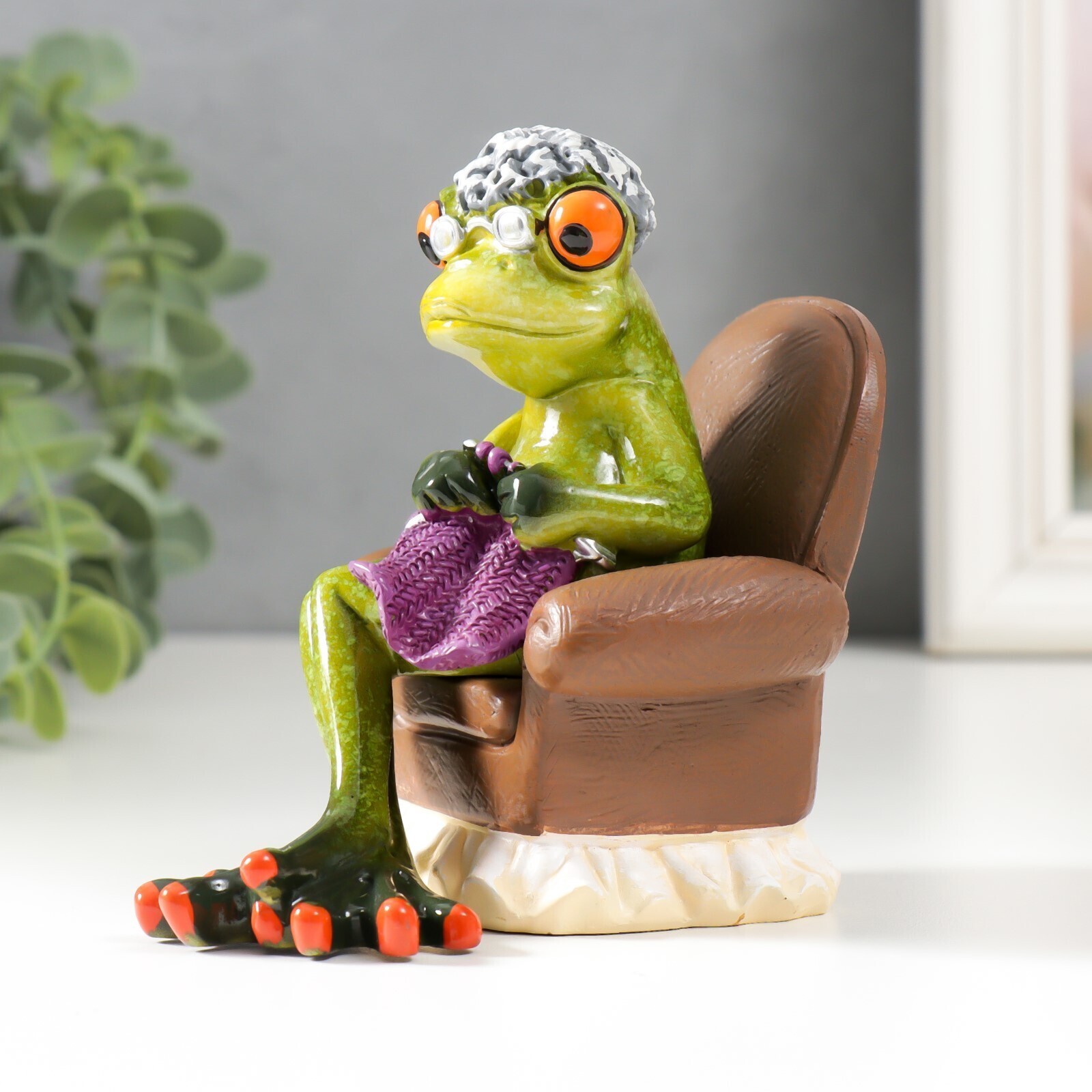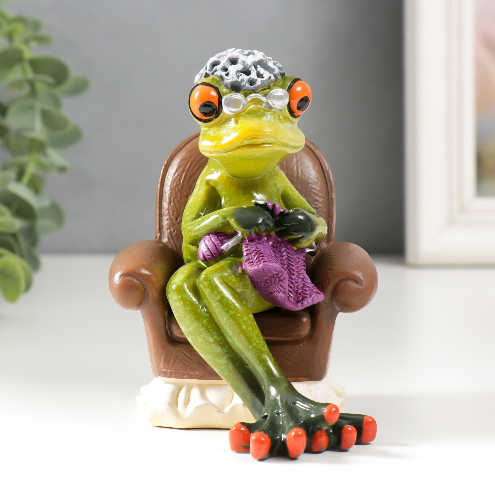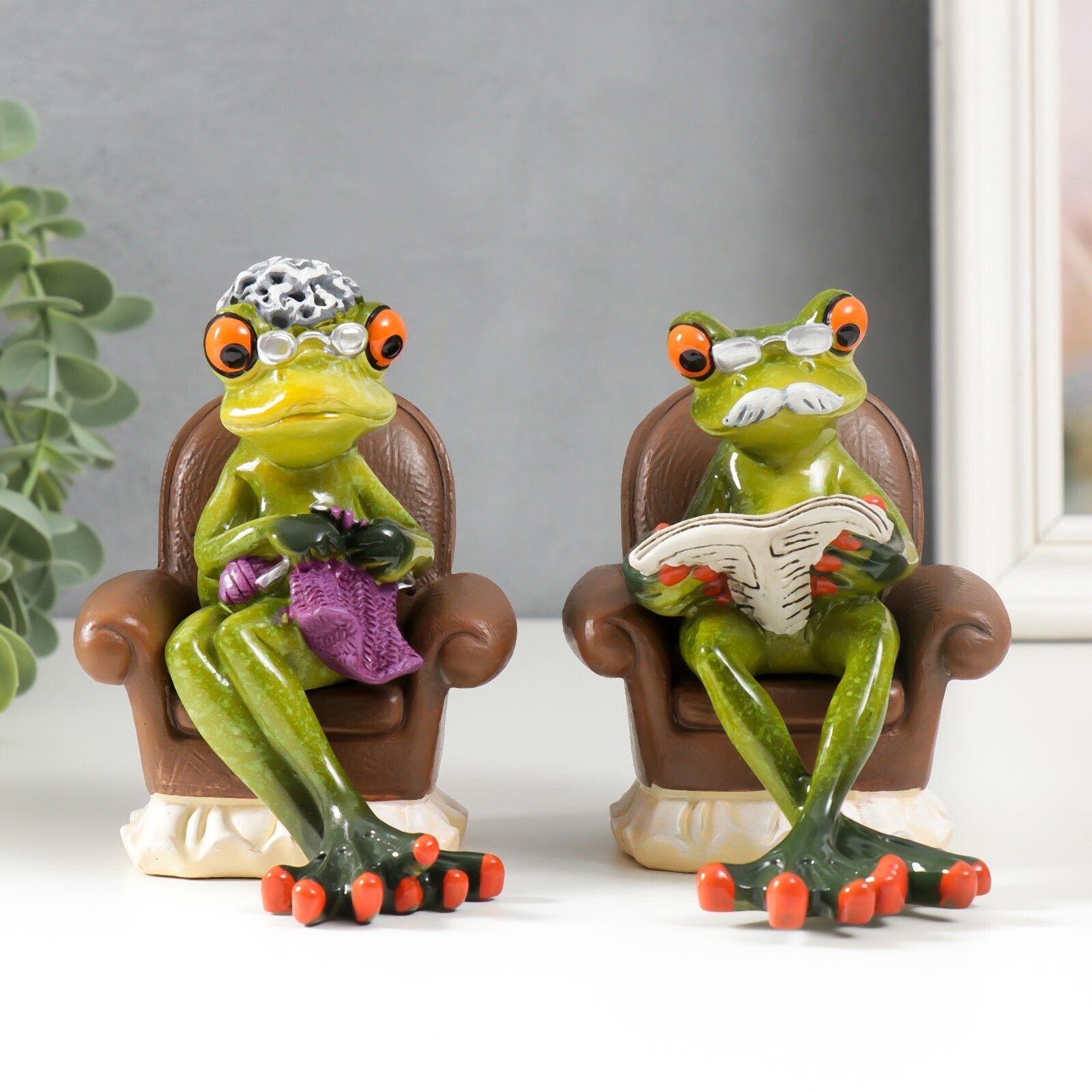 Сувенир полистоун лак "Лягуха-бабуля/Лягуха-дедуля в кресле" МИКС 13,5х10,5х8,5 см
