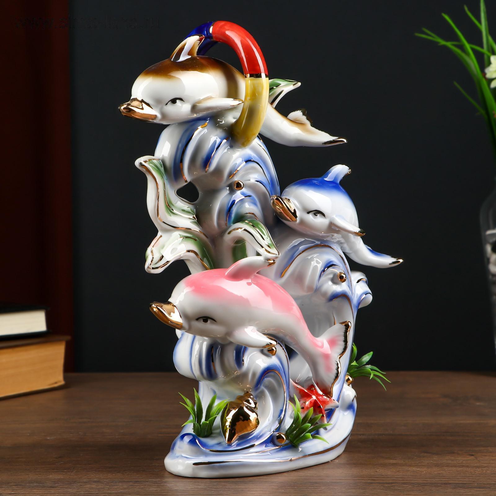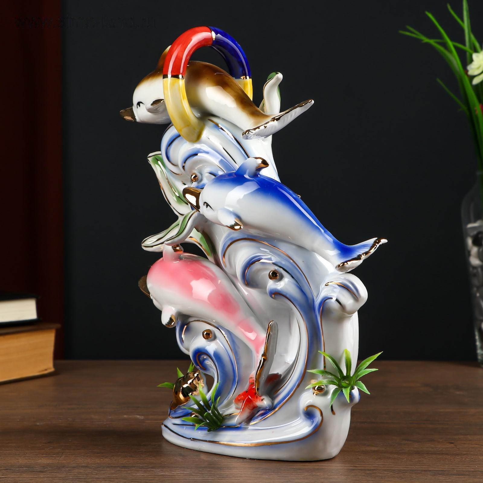 Сувенир керамика "Дельфины играют в салочки" 30х11х23 см
