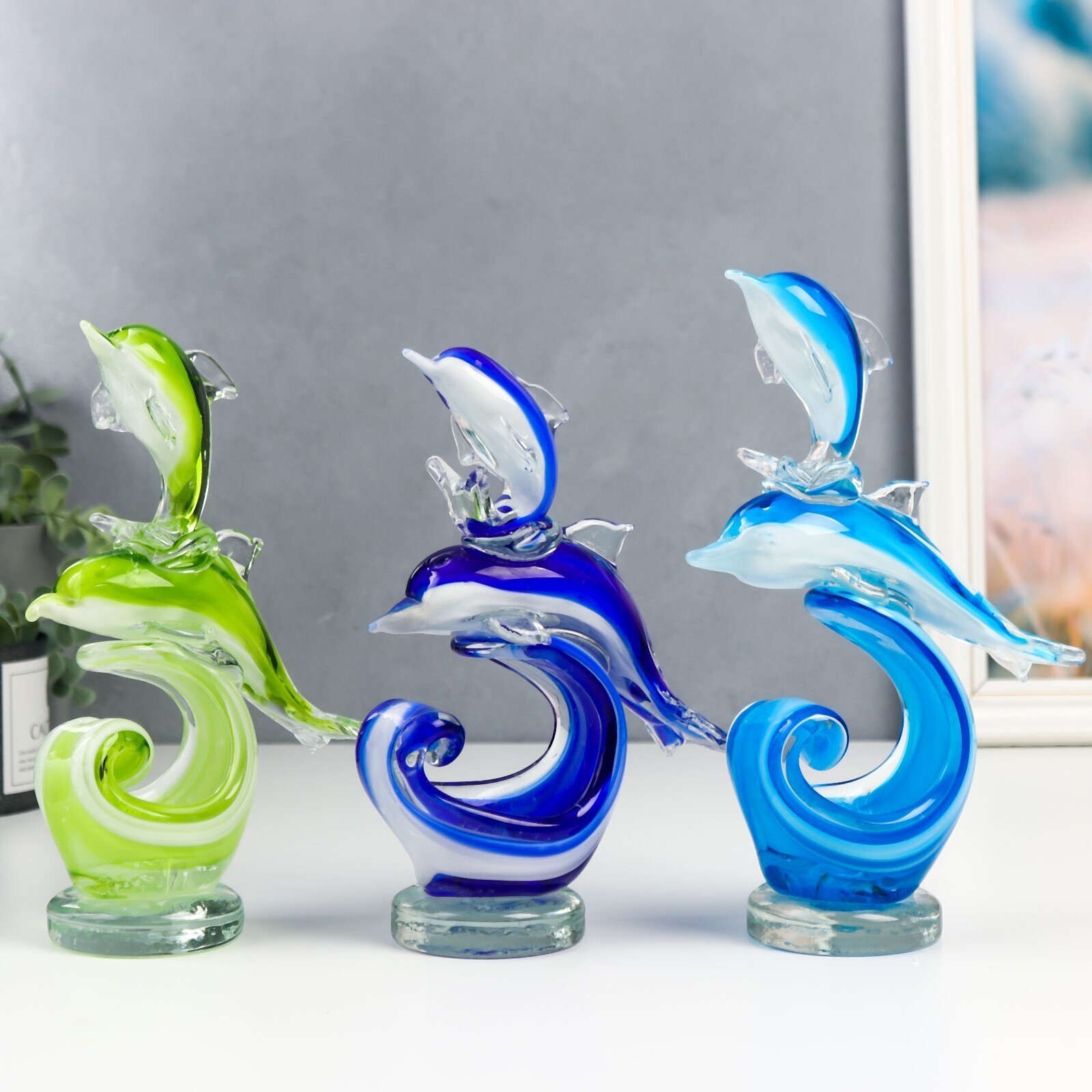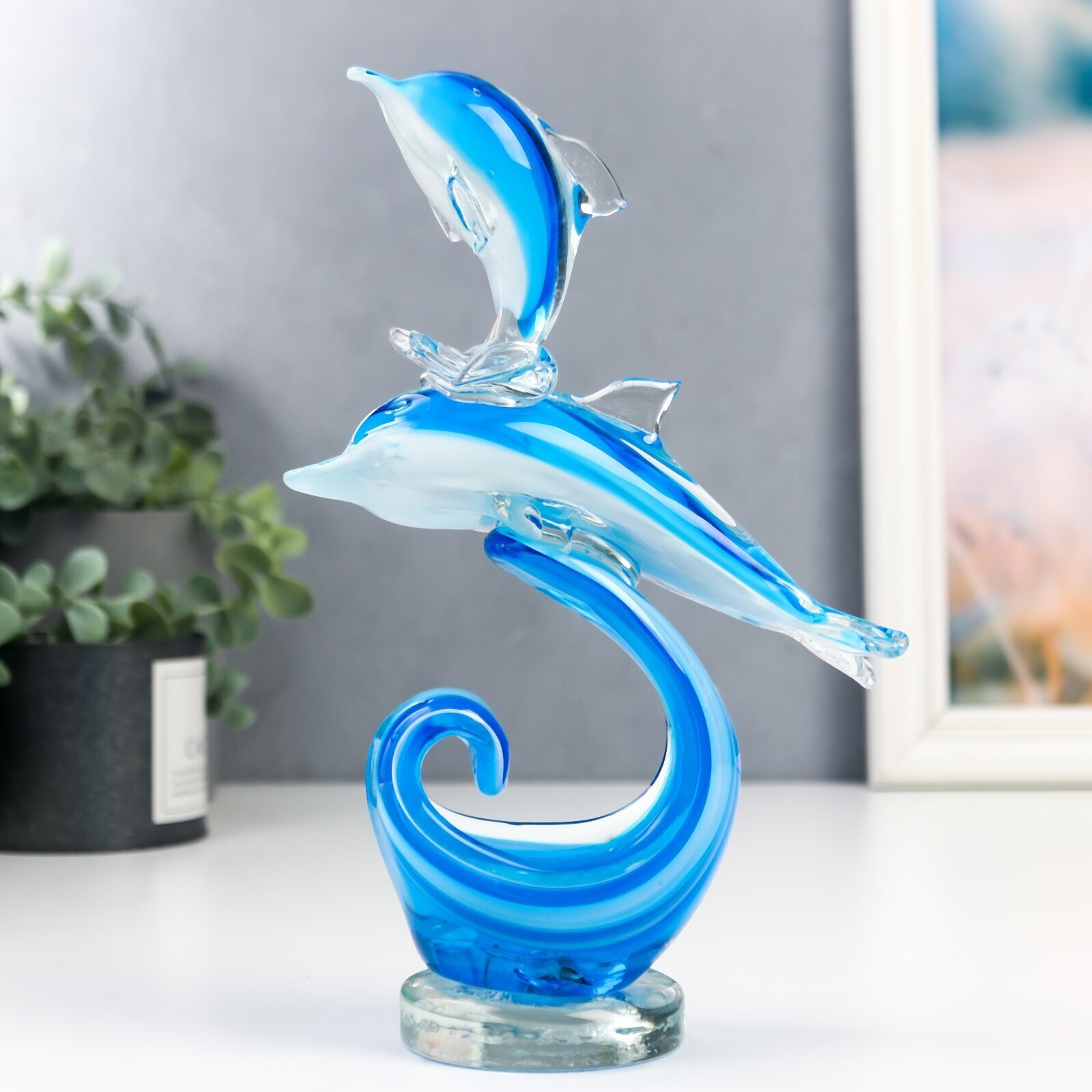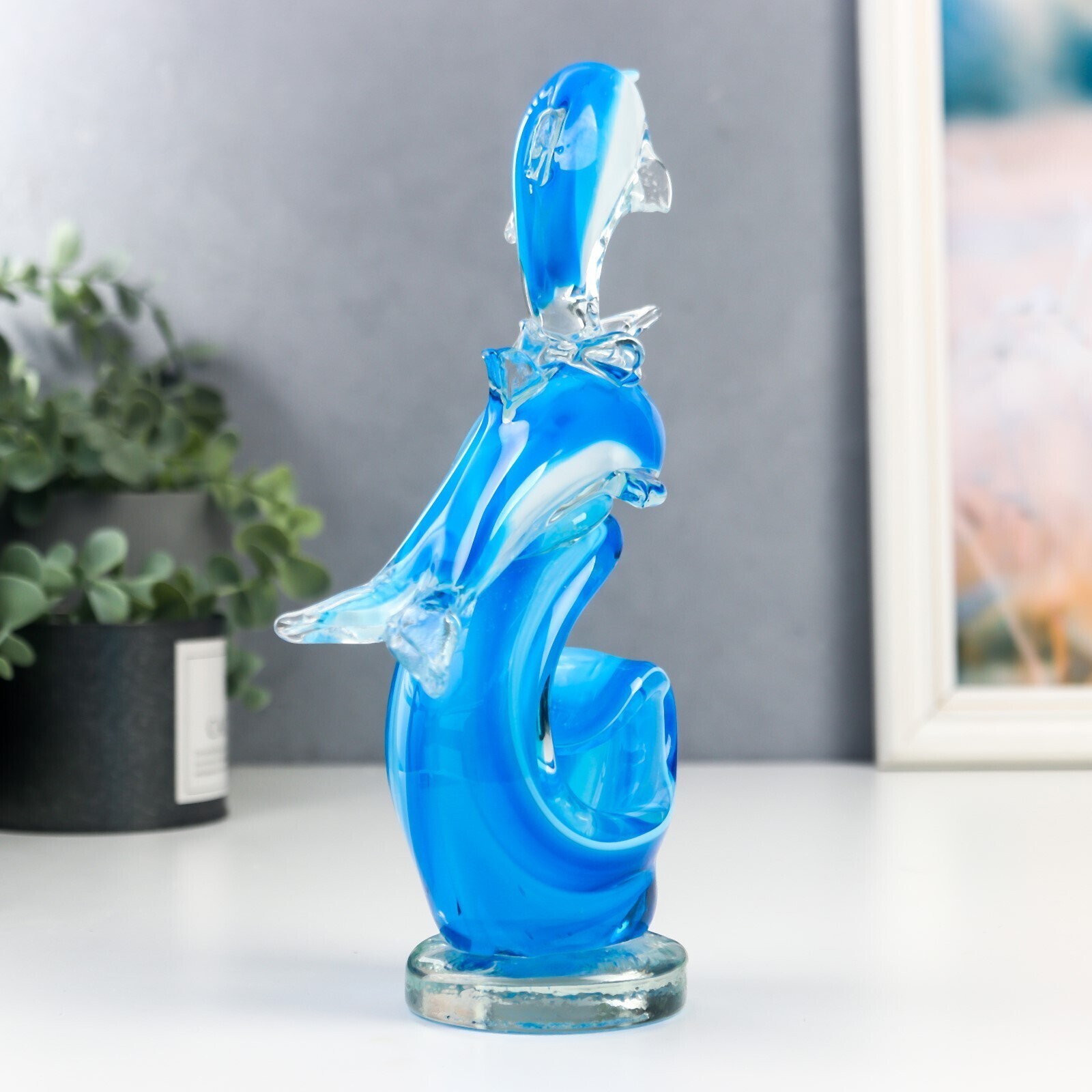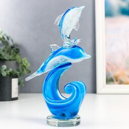 Сувенир стекло "Дельфины на волнах" под муранское стекло МИКС 21х6,5х15 см
