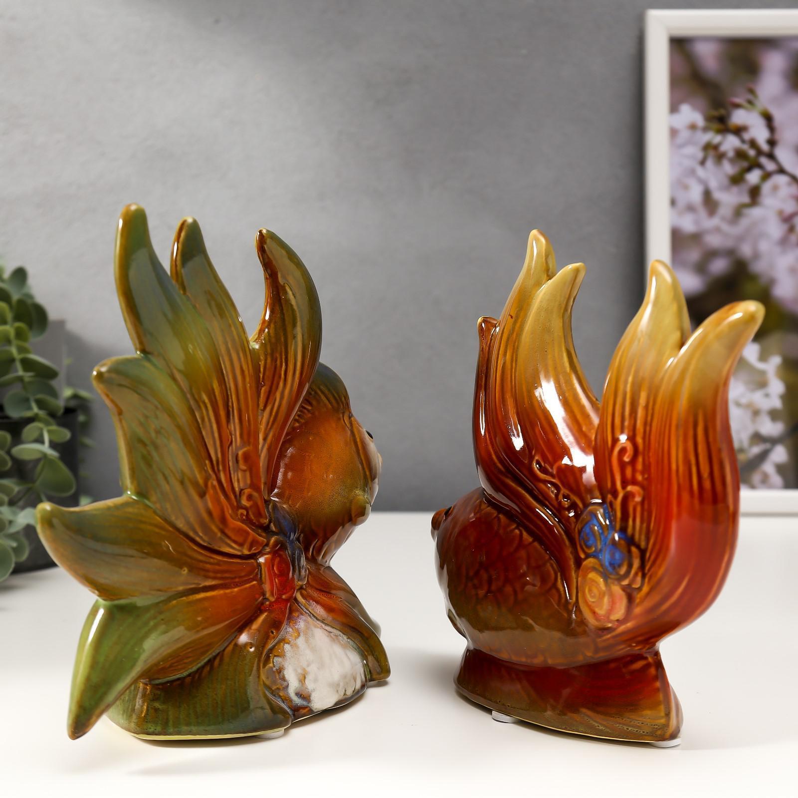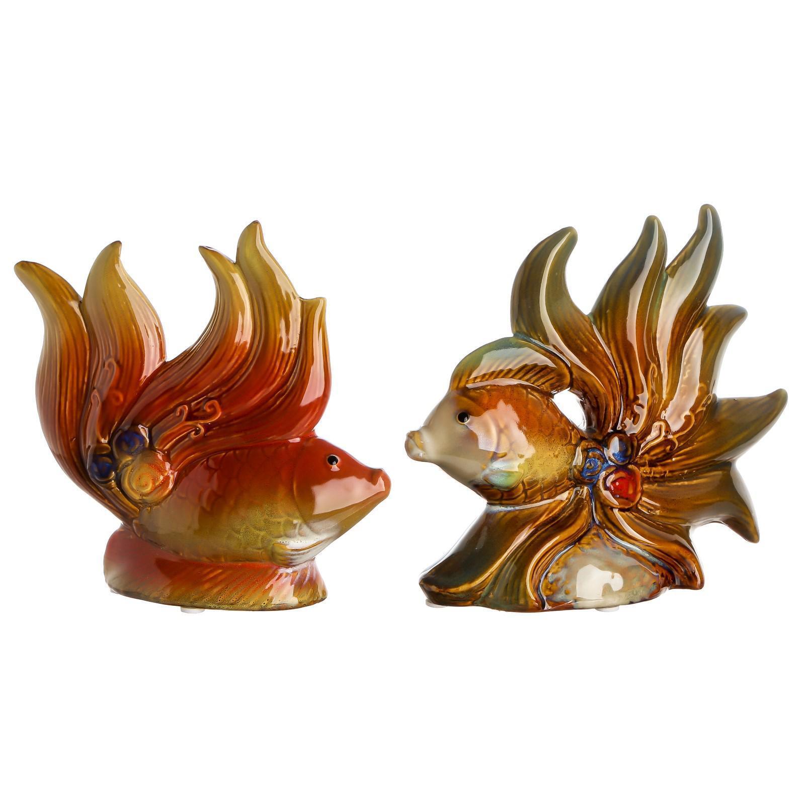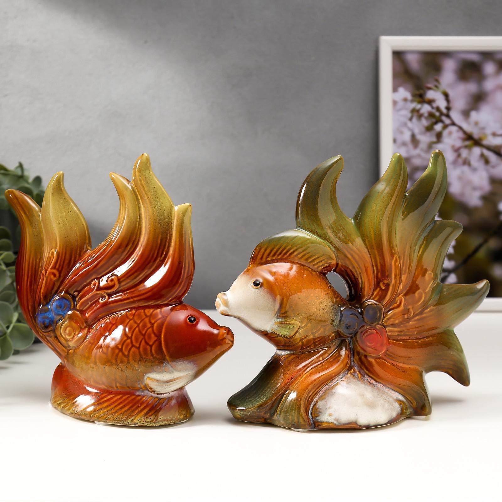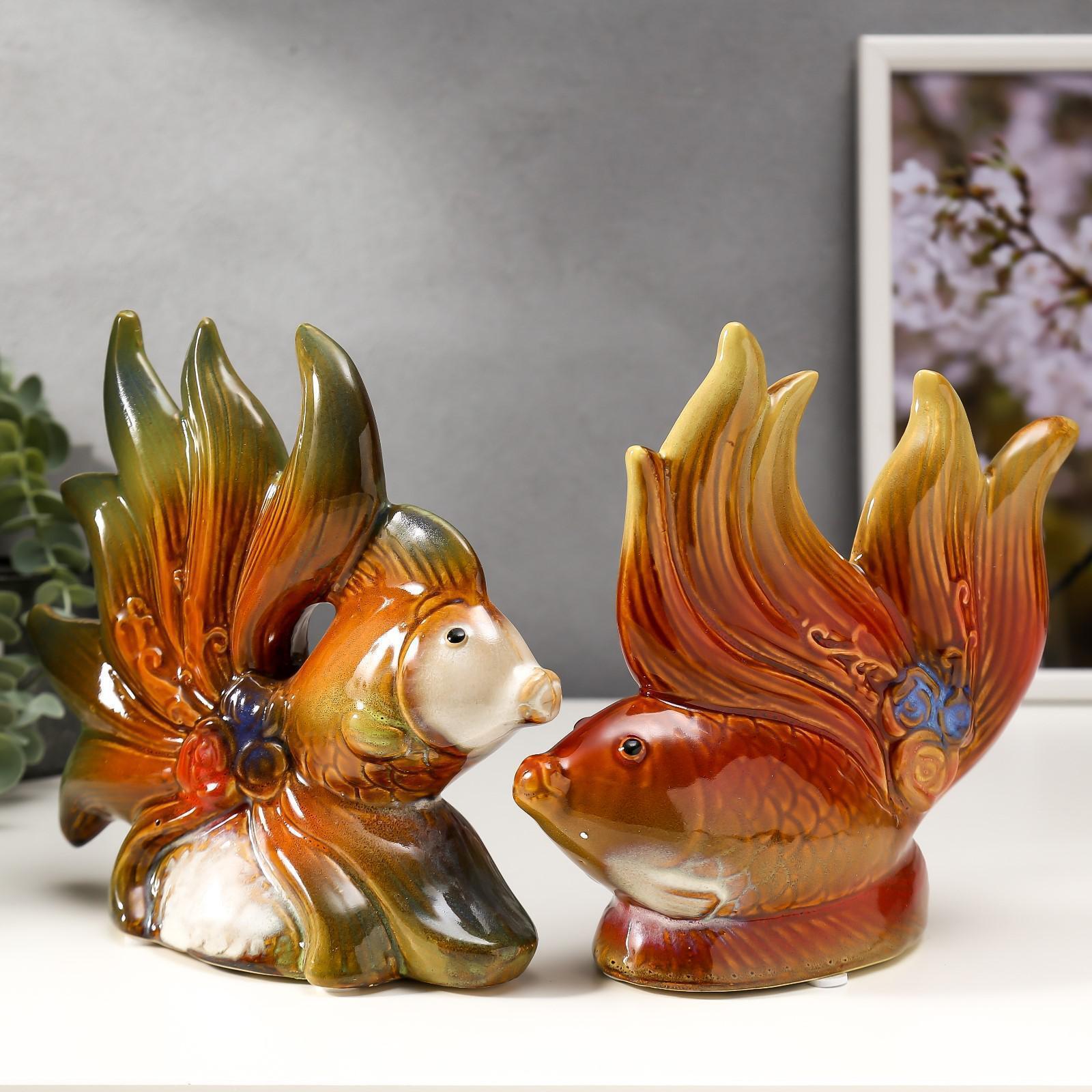 Сувенир керамика "Рыбки с цветами" набор 2 шт 16х15х5,5, 16х18,5х7,5 см