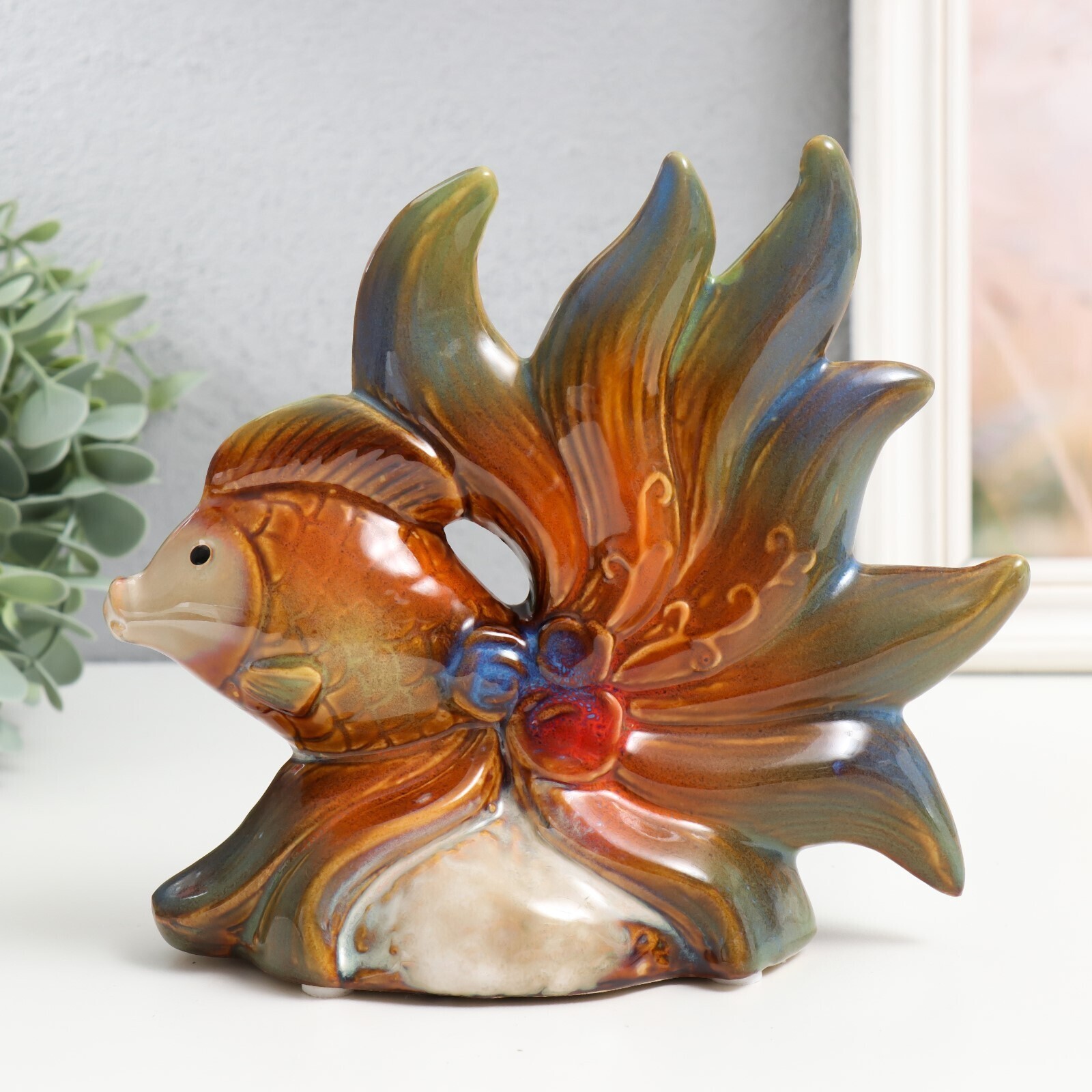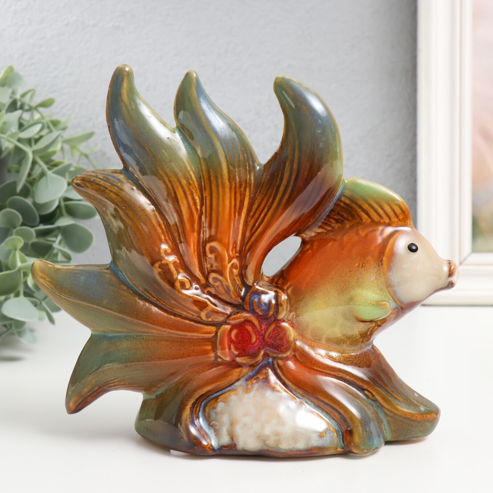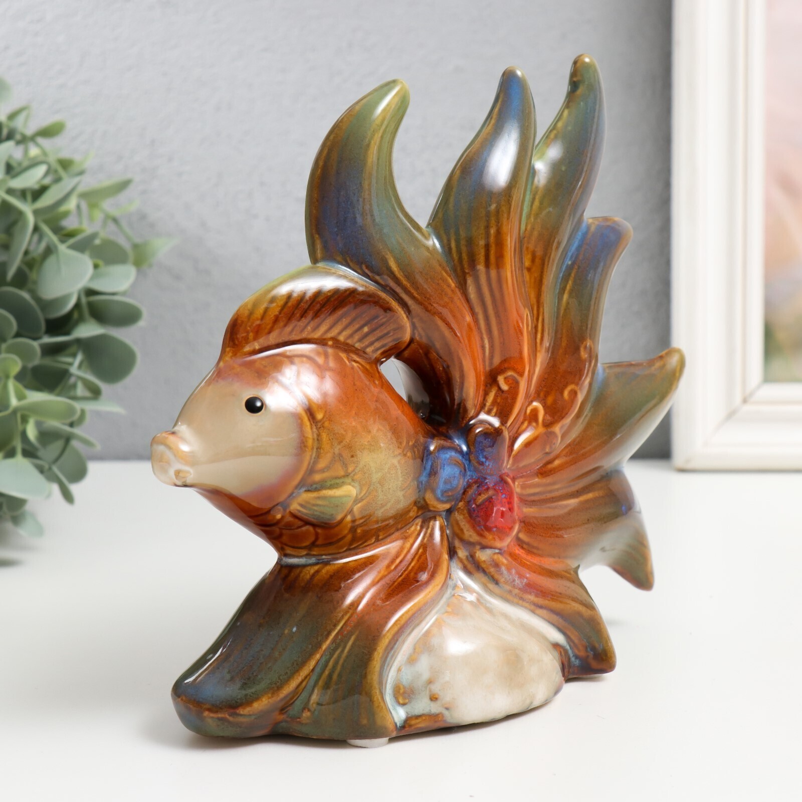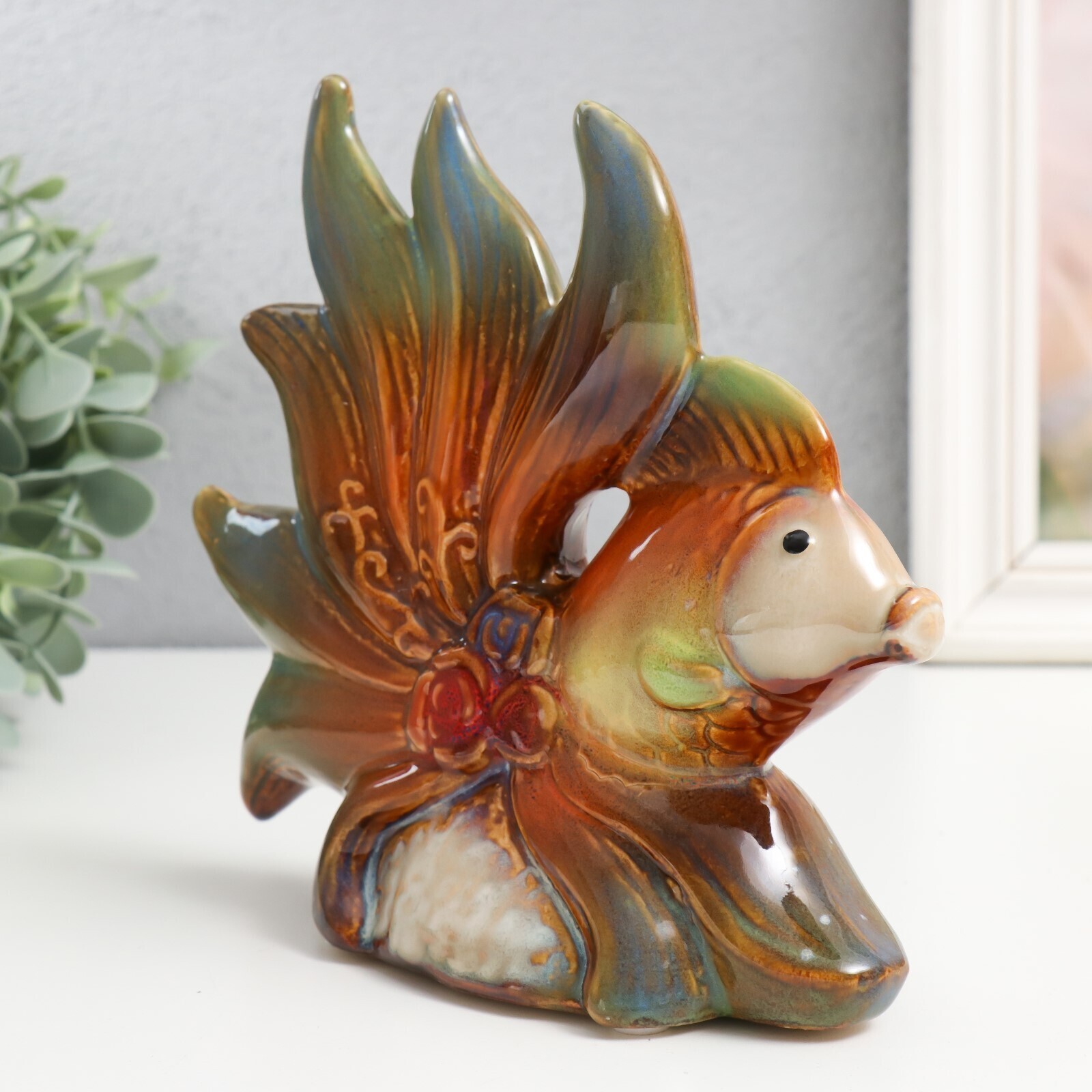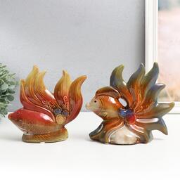 Сувенир керамика "Рыбки с цветами" набор 2 шт 16х15х5,5, 16х18,5х7,5 см