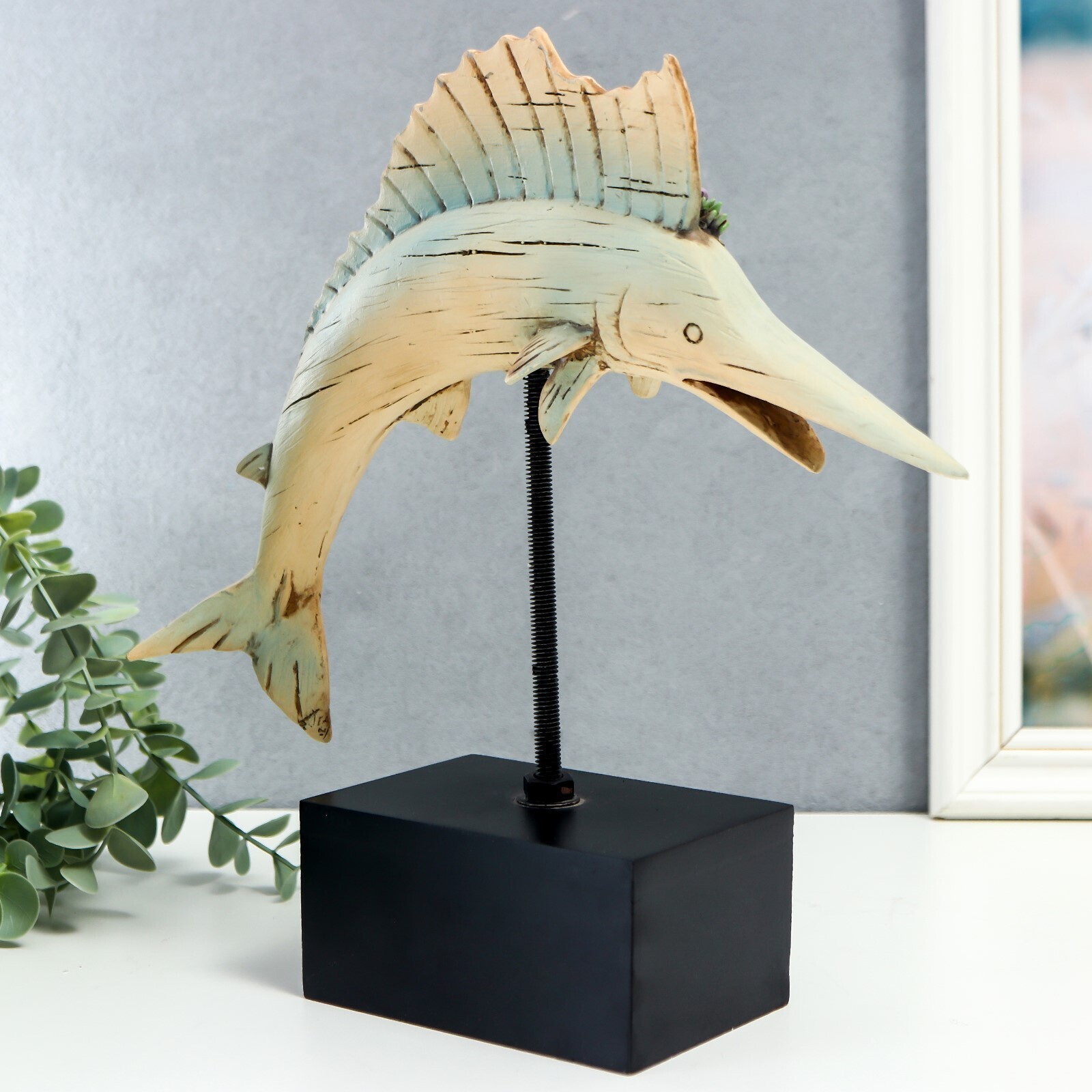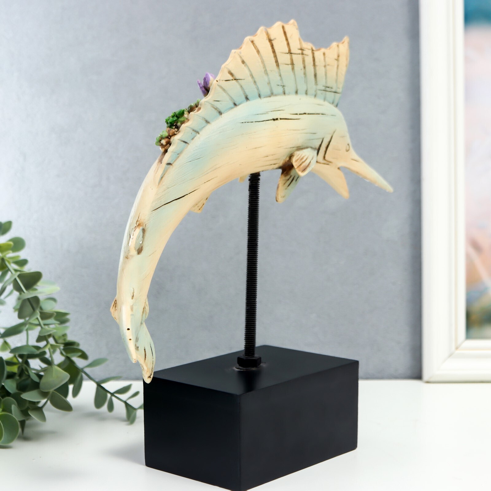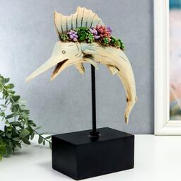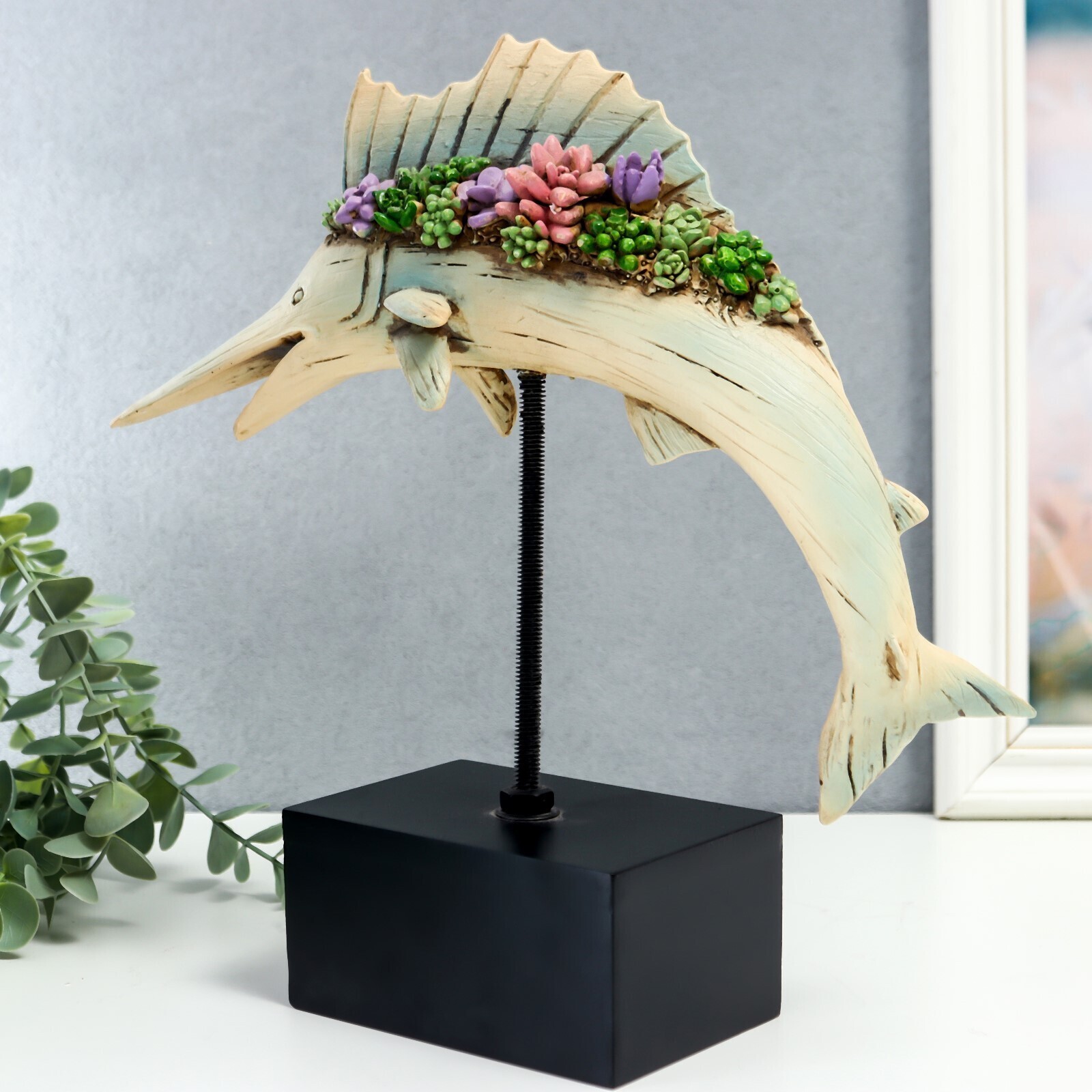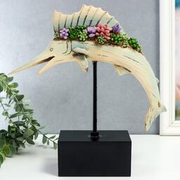 Сувенир полистоун "Рыба-меч с суккулентами" 31х10х28 см