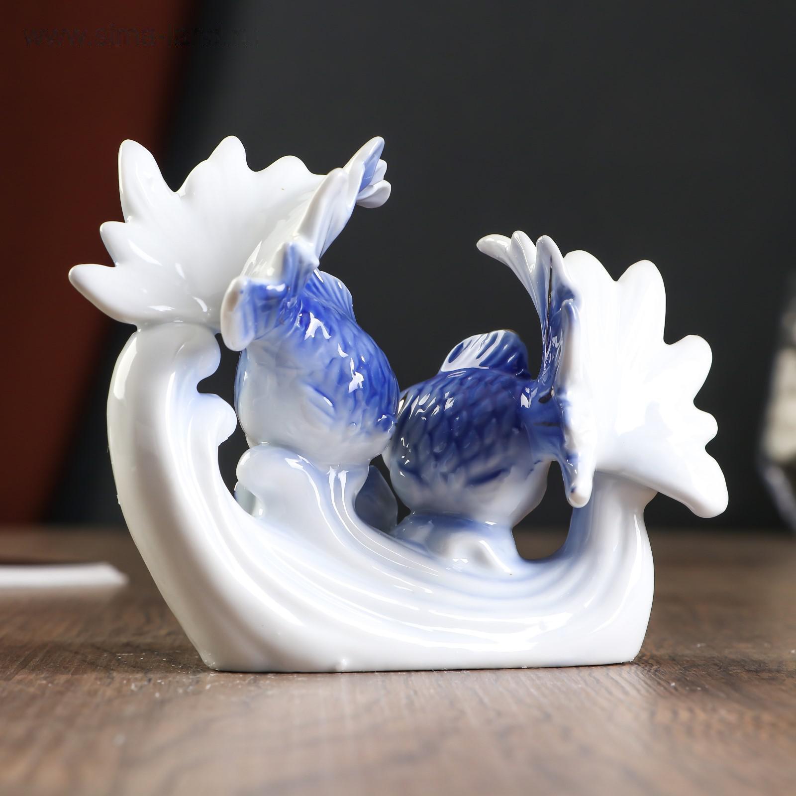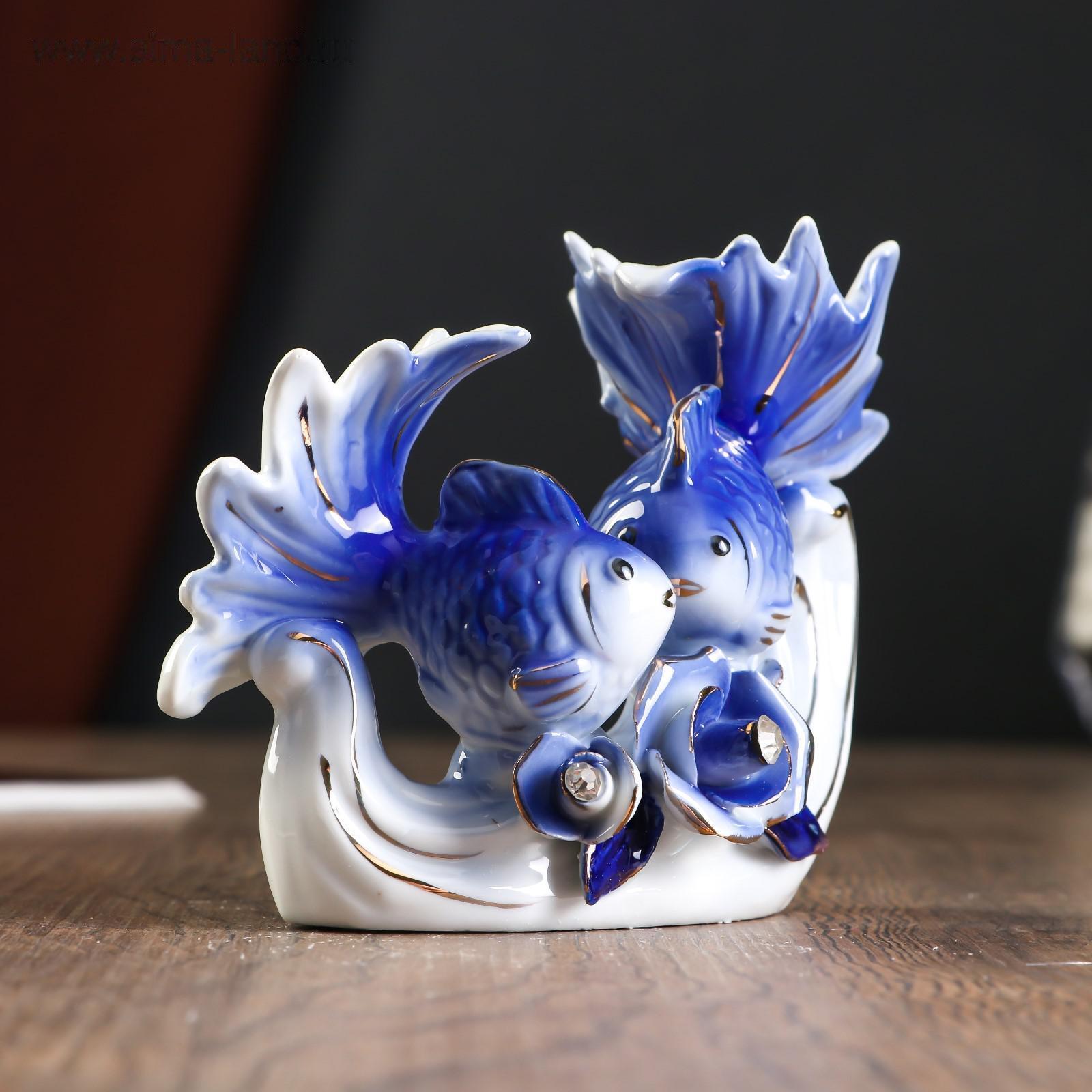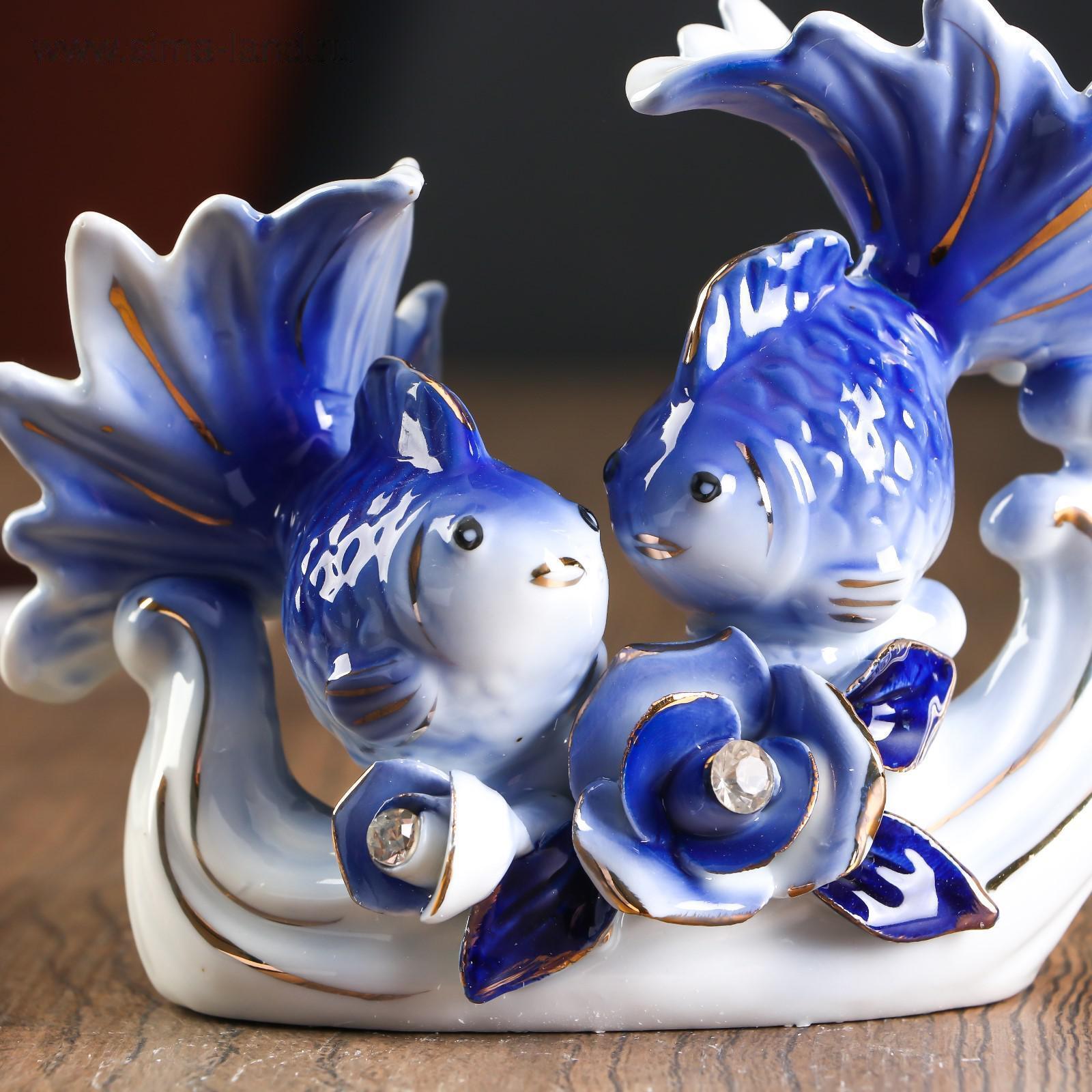 Сувенир керамика "Две рыбки с розой" страза 11х14х7,5 см