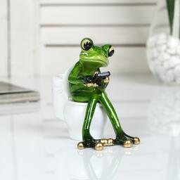 Сувенир полистоун лак "Лягушонок на унитазе с телефоном" 12,5х8х11 см