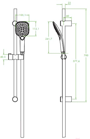 - В комплекте держатель, штанга, душевой шланг (с защитой от перекручивания), лейка ручная