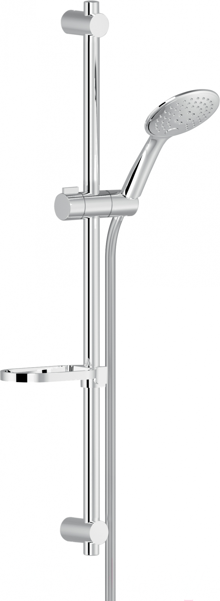 - В комплекте держатель, штанга, душевой шланг, мыльница, гибкая подводка, лейка душевая