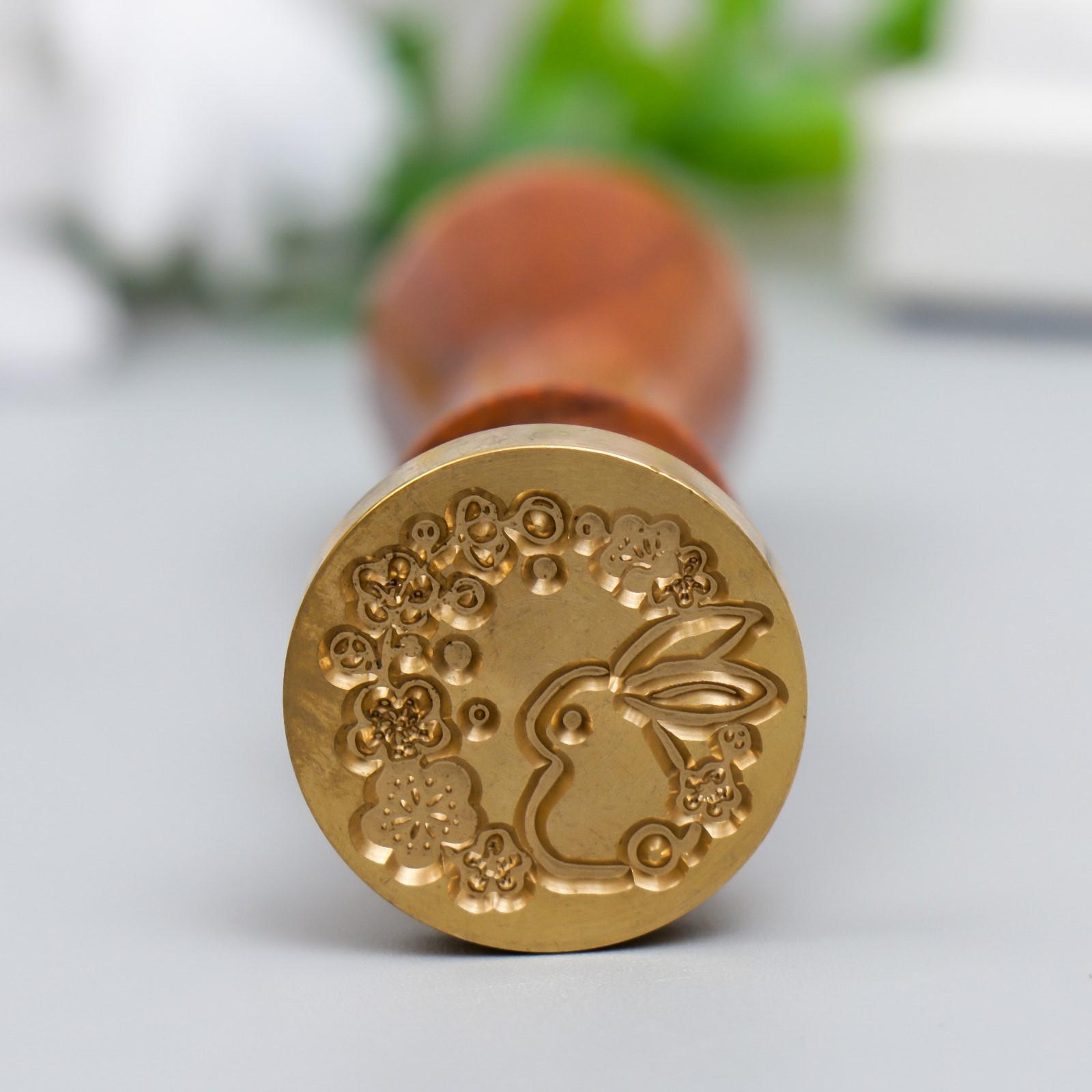 Печать для сургуча с деревянной ручкой "Зайчик и цветочки" 9х2,5х2,5 см