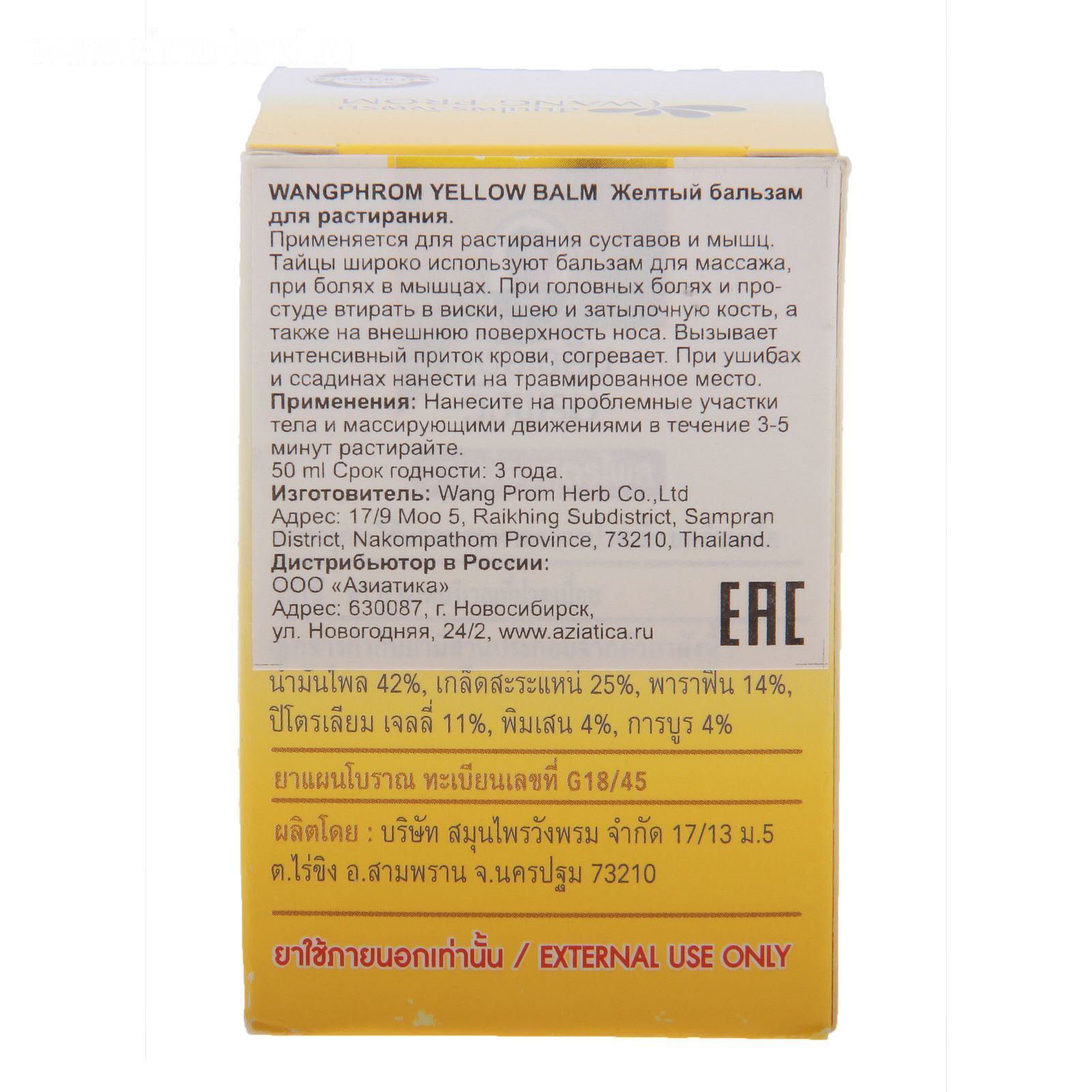 Бальзам Wangphrom Yellow Balm желтый для растирания, 50 г