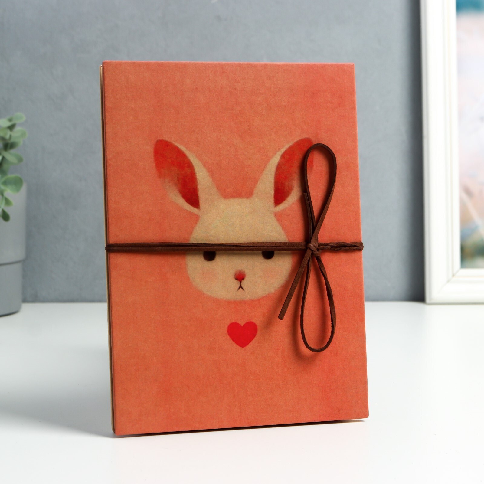 Фотоальбом гармошка 18 складок 34 стороны "Кролик с сердечком" чёрные листы 21х15 см