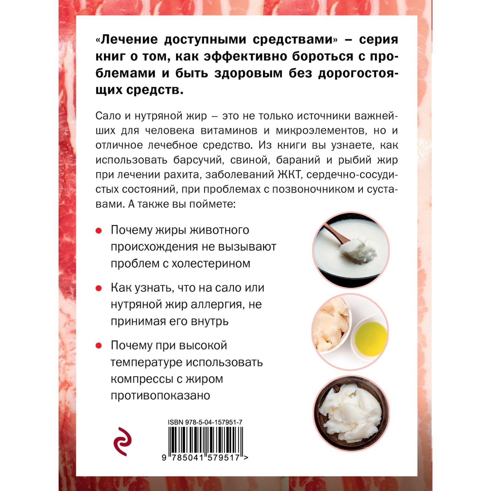 Животные жиры активно используются для изготовления лечебных препаратов. Медвежий, барсучий, гусиный жир и жир рыб применяется как при заболеваниях внутренних органов, так и в качестве согревающего средства. В книге вы найдете самые разные рецепты приготовления лекарств на основе различных видов животных жиров.