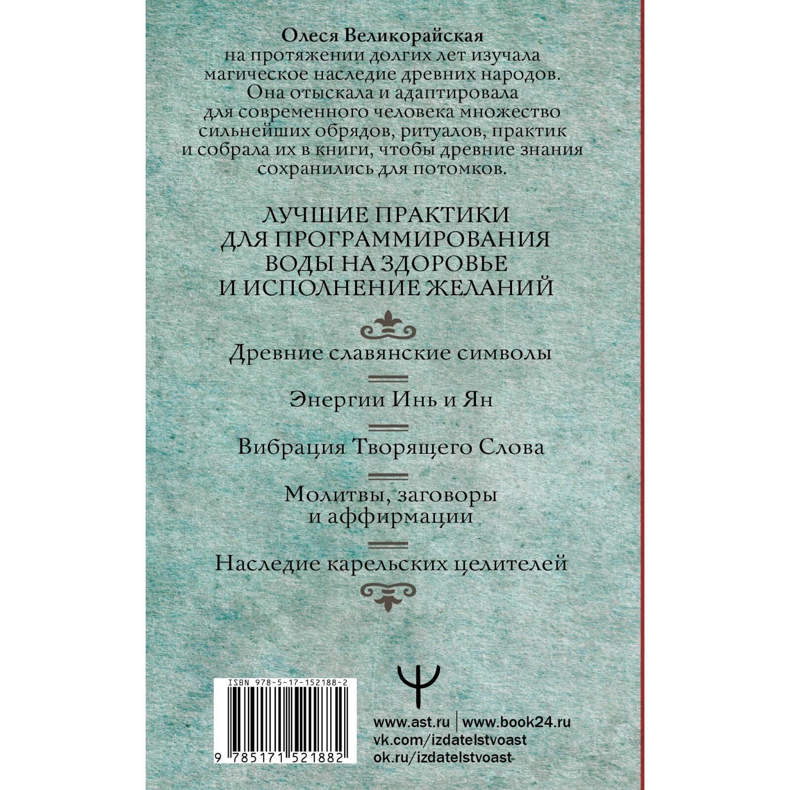 В книге «Вода-целительница. Как зарядить воду, чтобы она дарила здоровье и исполняла желания» Олеся Великорайская, на протяжении долгих лет изучавшая магическое наследие древних народов, собрала лучшие старинные практики, которые помогут вам зарядить воду на защиту от любого зла, возвращение здоровья и исполнение любых желаний.
