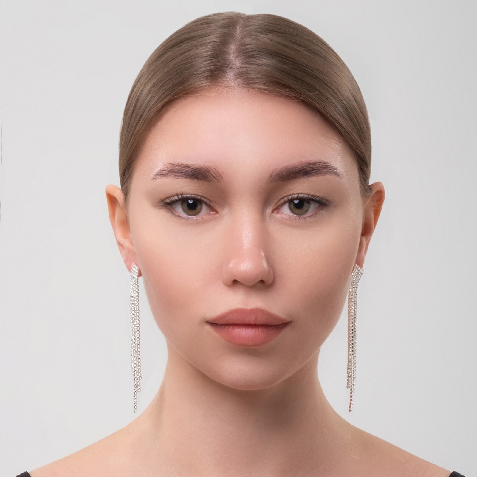Серьги висячие со стразами "Водопад" на прямоугольнике, цвет белый в серебре