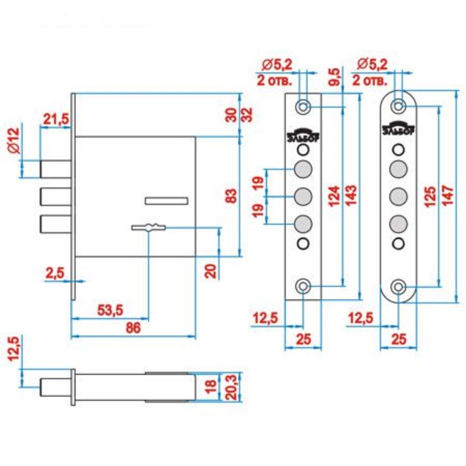 Замок врезной "Эльбор" Кремень 1.04.04.3.5 (074 В), б/о, б/ручки, 3 ключа, цвет цинк