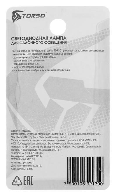 Светодиодные автомобильные лампы TORSO SMD-5050 производятся из высококачественных материалов на профессиональном оборудовании.