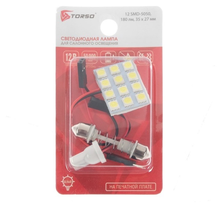 Автолампа светодиодная Torso, универсальная, 12 В, 12 Smd-5050, свет белый