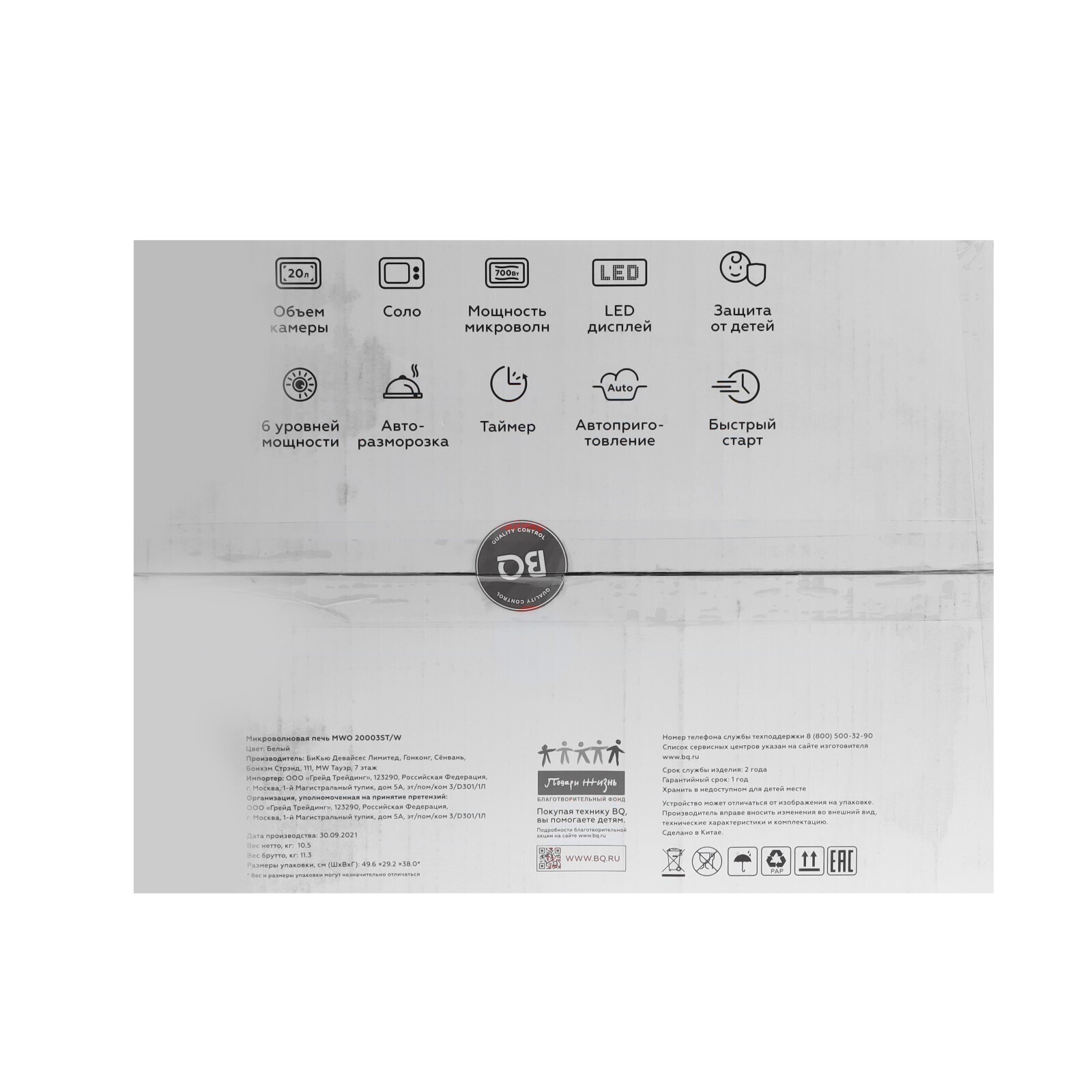 Микроволновая печь BQ MWO-20003ST/W, 700 Вт, 20 л, белая