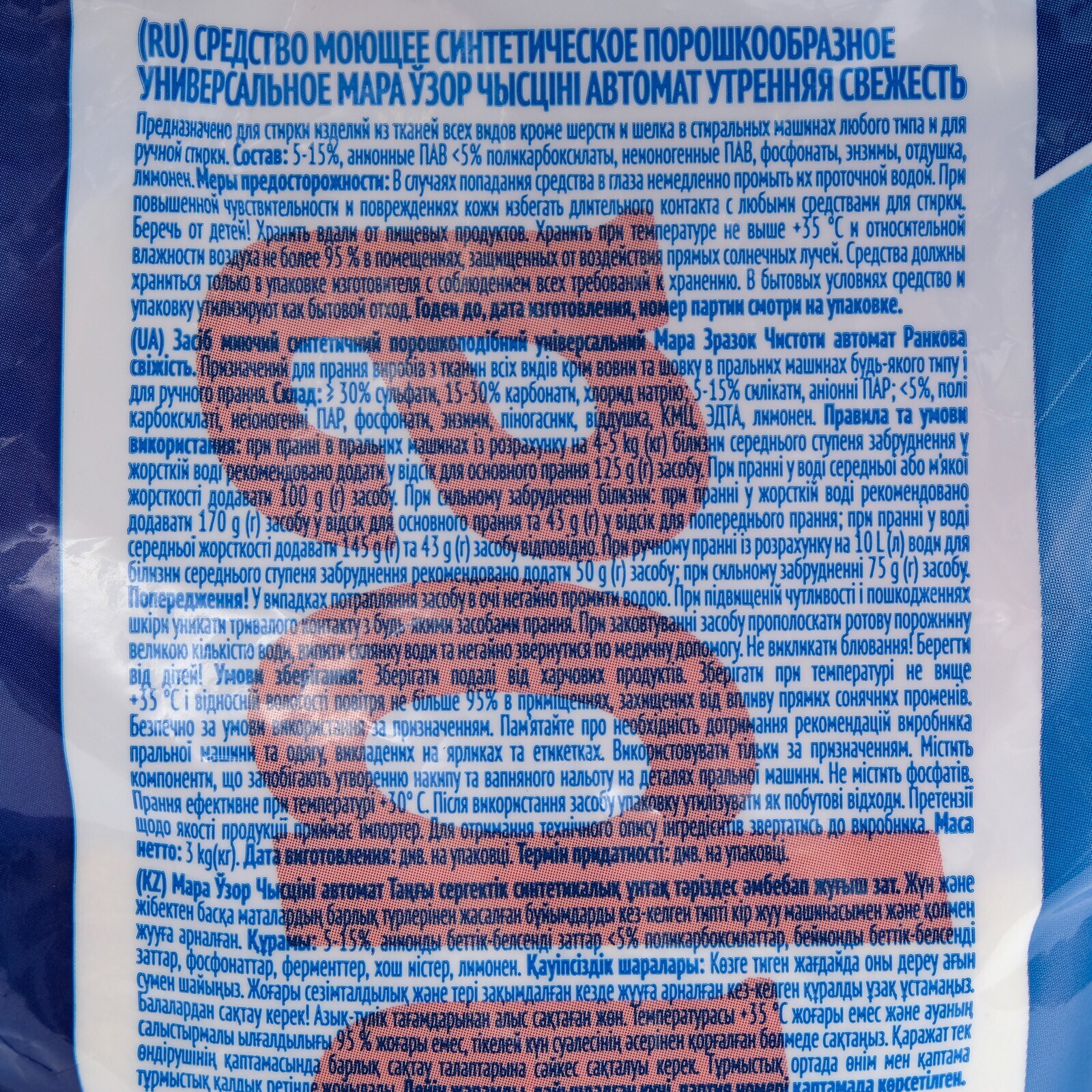Стиральный порошок Мара Узор Чысціні "Утренняя свежесть" универсальный, автомат, 3 кг