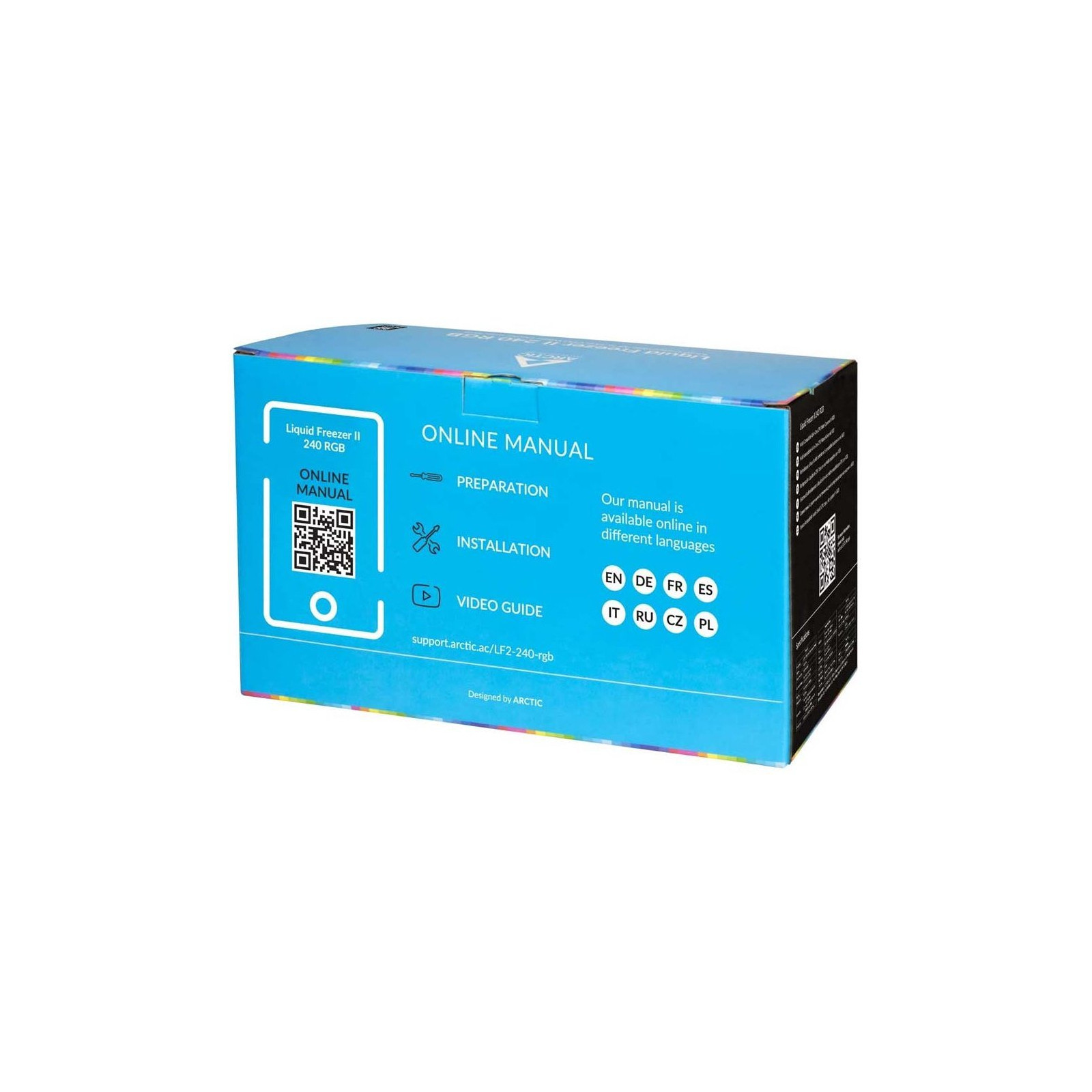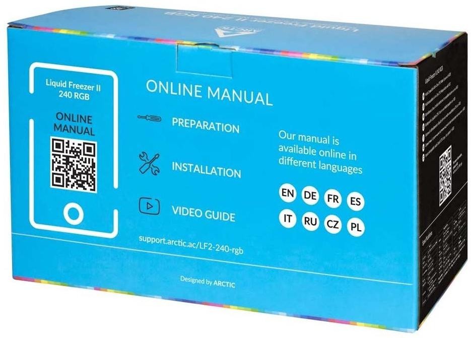 Liquid Freezer II RGB поєднує в собі ефективну запатентовану водяну помпу із ШІМ серії Liquid Freezer II й нові RGB-вентилятори ARCTIC, оптимізовані для статичного тиску. Якщо ваша материнська плата не має власного роз’єму RGB, освітленням також можна керувати за допомогою контролера ARCTIC RGB.