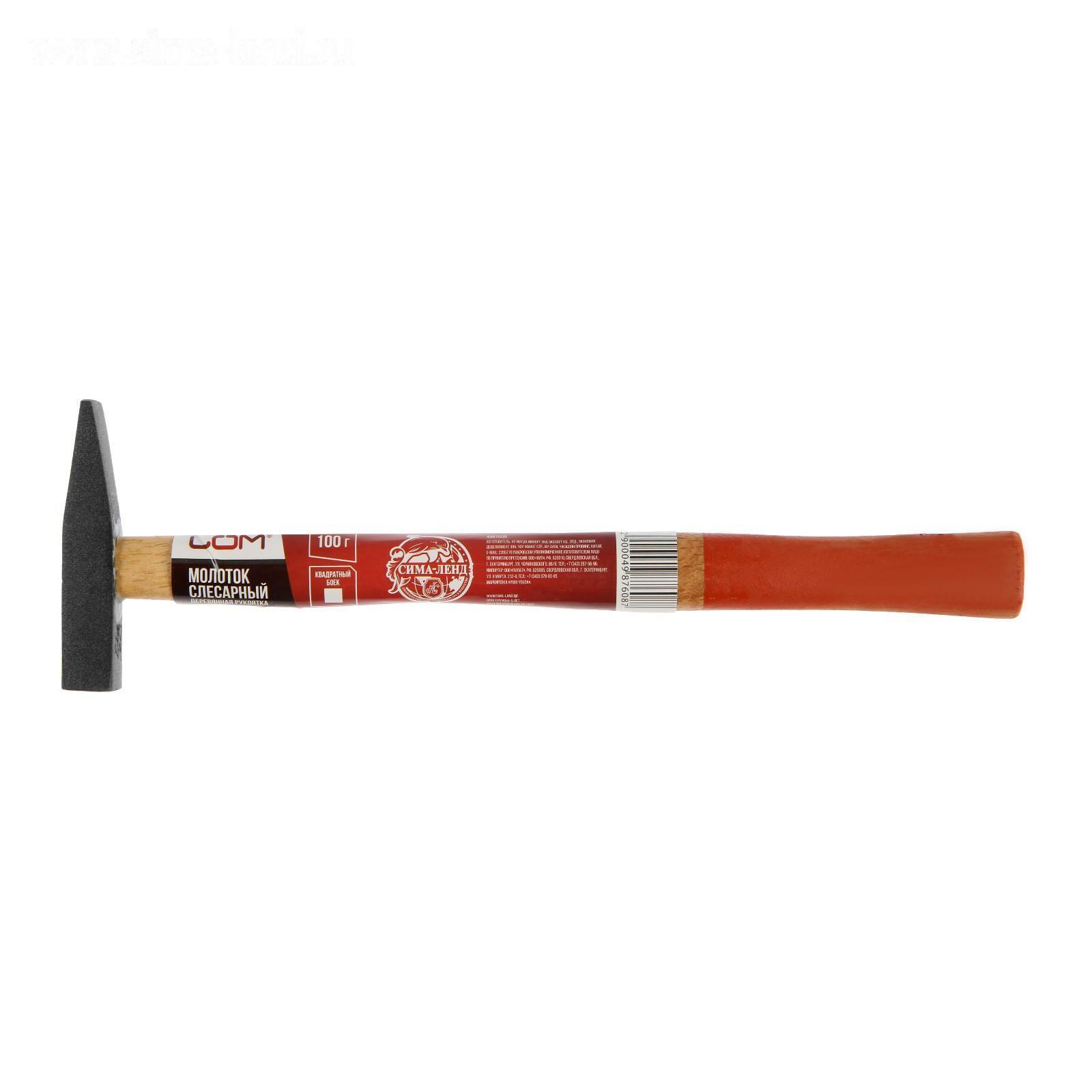 Молоток слесарный ЛОМ, квадратный боек, деревянная рукоятка, 100 г