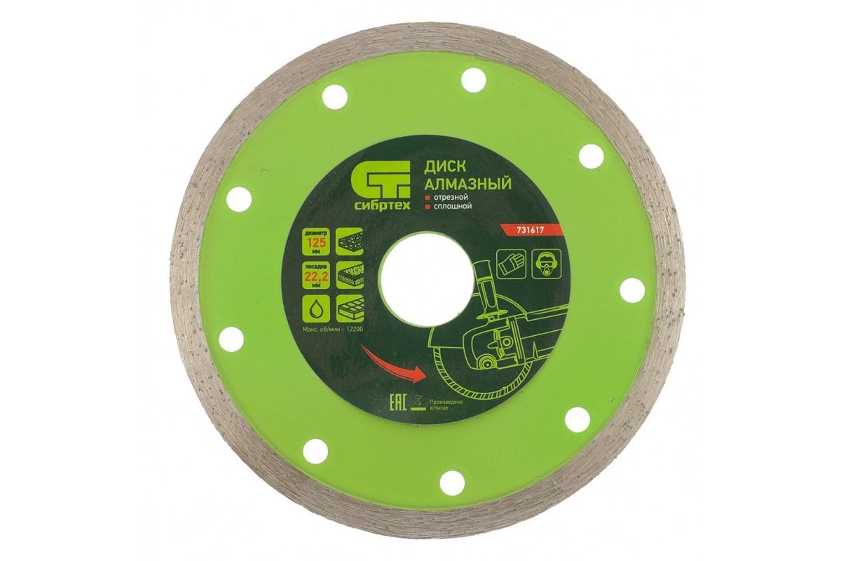 Круг алмазный СИБРТЕХ 731617 Ф125х22мм сплошной по керамике
