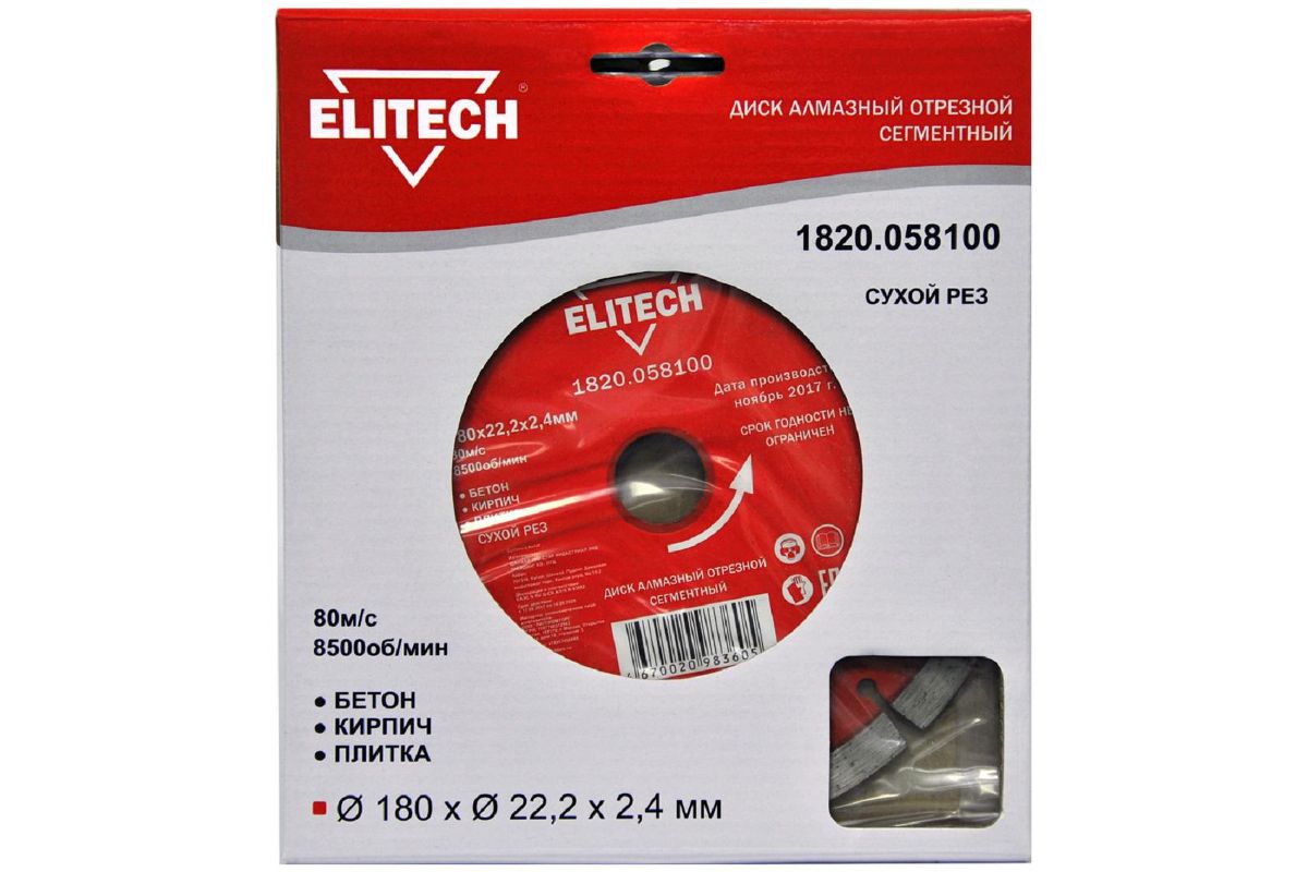 Диск алмазный ELITECH сегментный,ф180х22.2х2.4мм,д\сухого реза,д\бетона,кирпича,плитки
