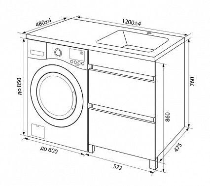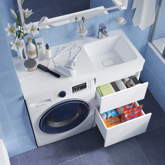 Тумба под стиральную машину правая Iddis Optima 120 с умывальником, белая OPH12RBi95K. Образец. Распродажа