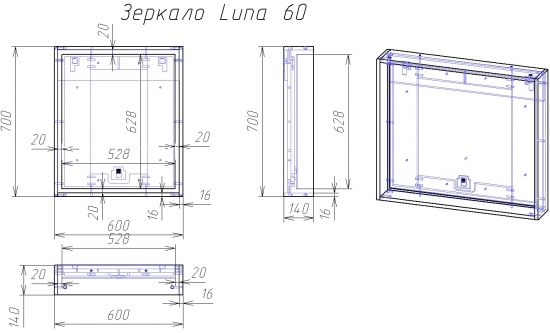 Зеркало прямоугольное Cersanit LOUNA 60 с подсветкой универсальный белый LU-LOU60-Os. Образец. Распродажа