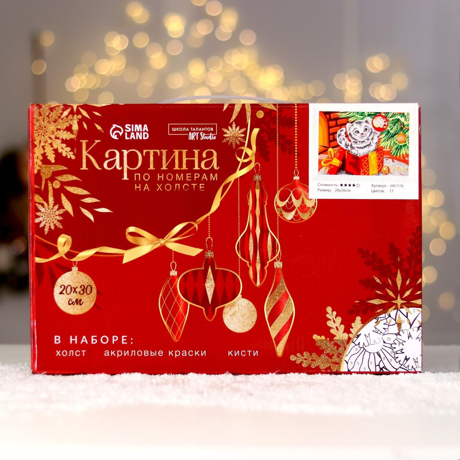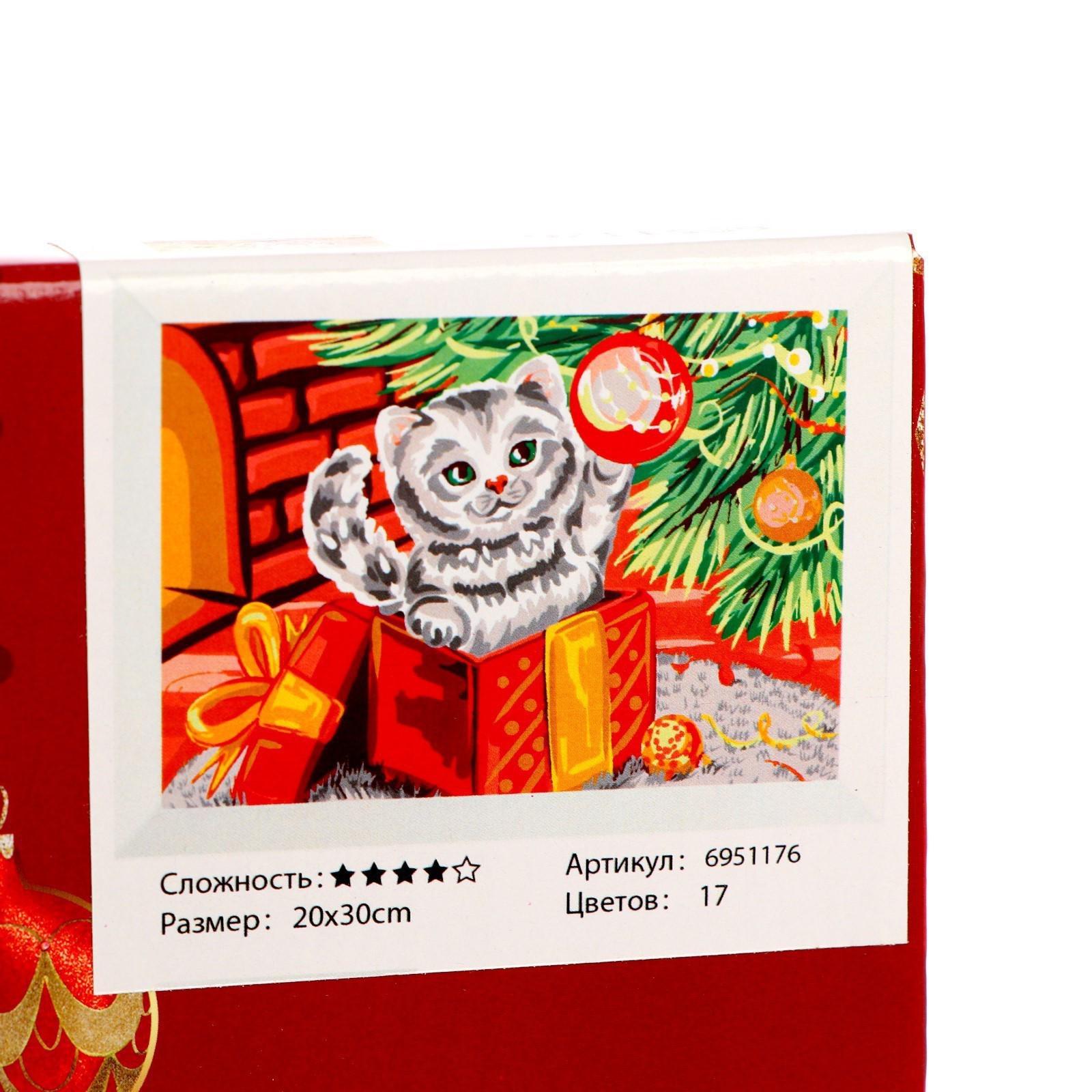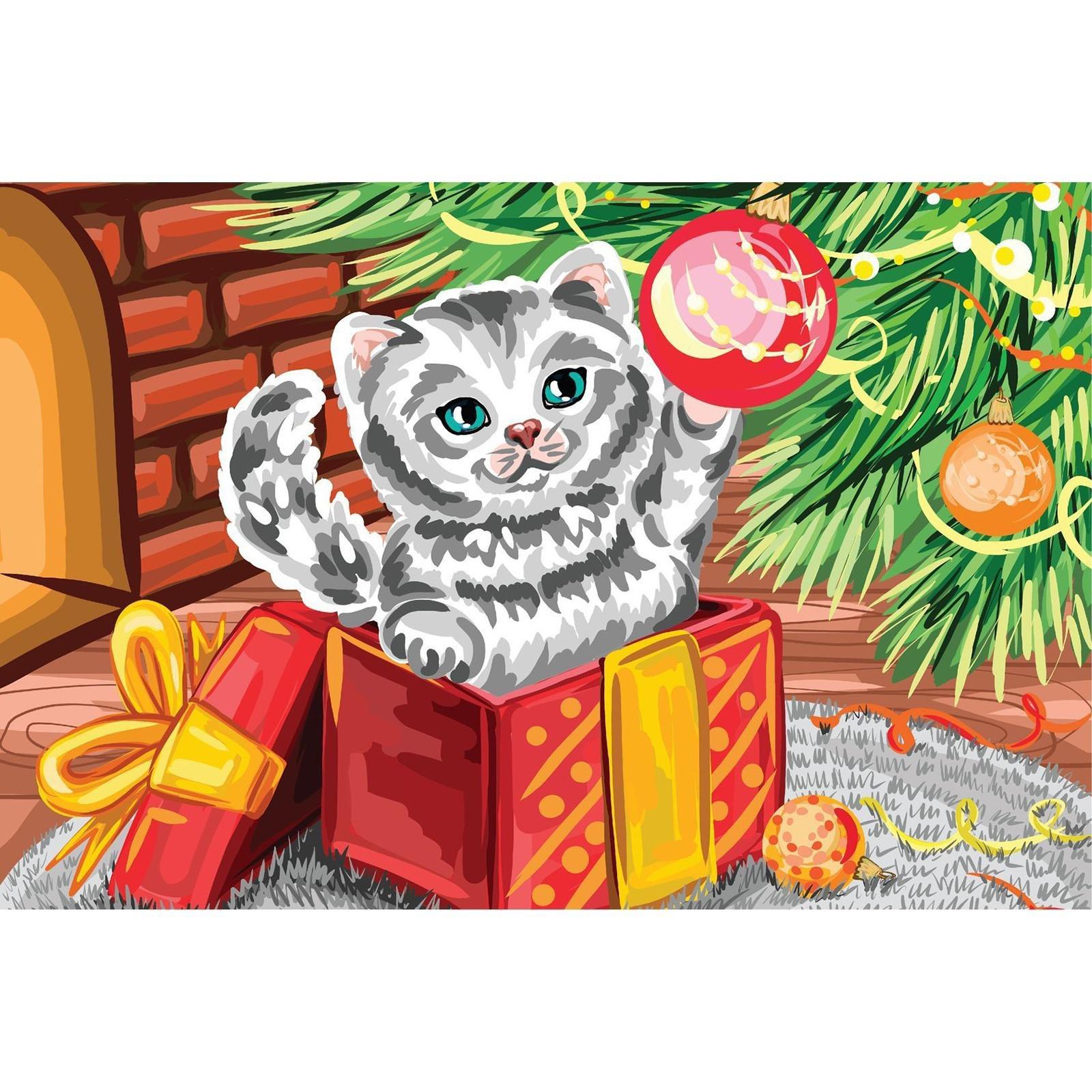 Картина по номерам на холсте с подрамником «Котик в коробке» 20х30 см
