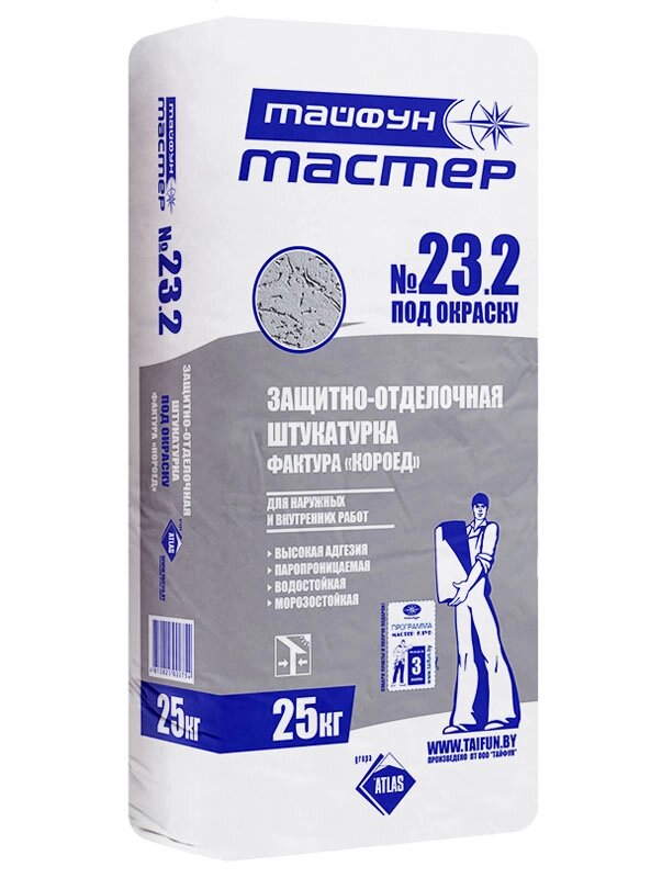 Декоративная штукатурка Тайфун Мастер 23.2 фактура короед серый, 25 кг