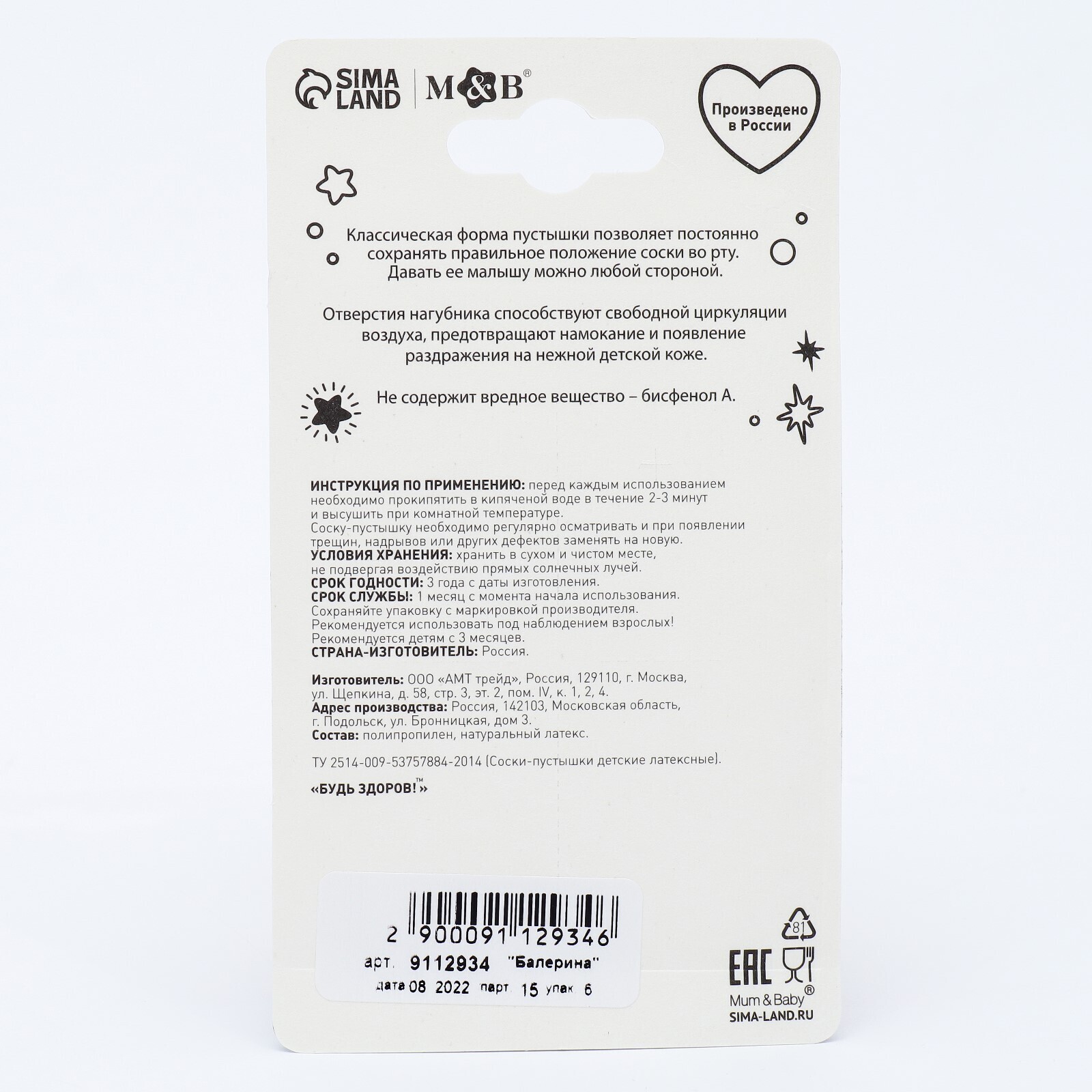 Соска - пустышка классическая, латекс, +3мес., «Балерина»