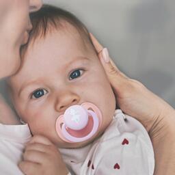 Отверстия нагубника обеспечивают свободную циркуляцию воздуха, предотвращают намокание и появление раздражения на нежной детской коже. Пустышку удобно держать в руках благодаря кольцу, которое прекрасно подходит для цепочки с прищепкой .