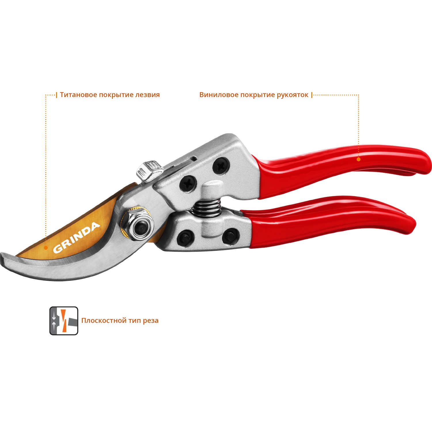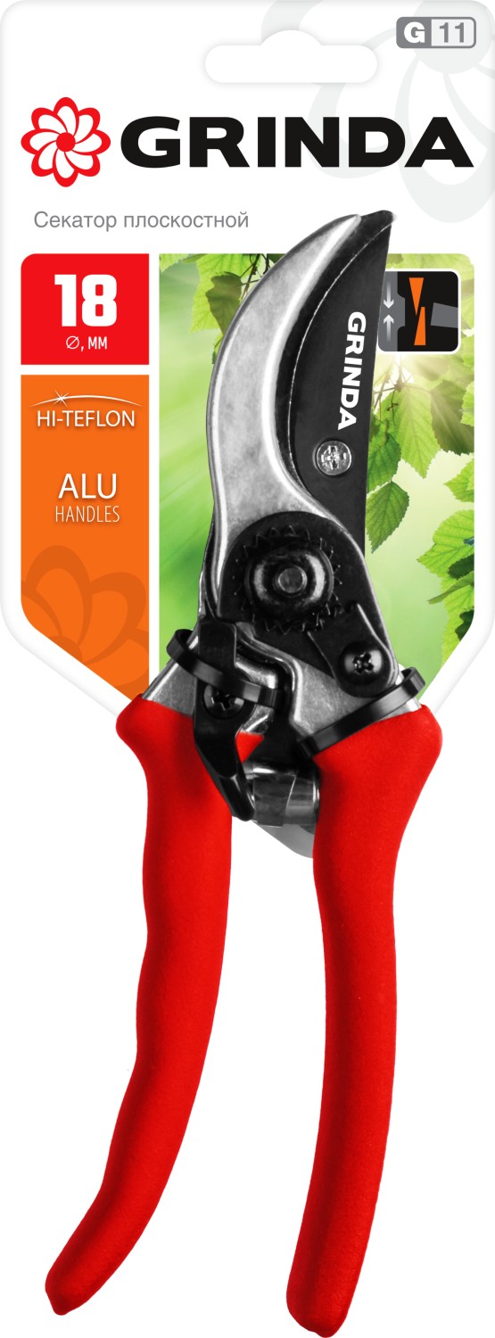 Описание товара Секатор с алюминиевыми рукоятками G-11, плоскостной, 210 мм, GRINDA