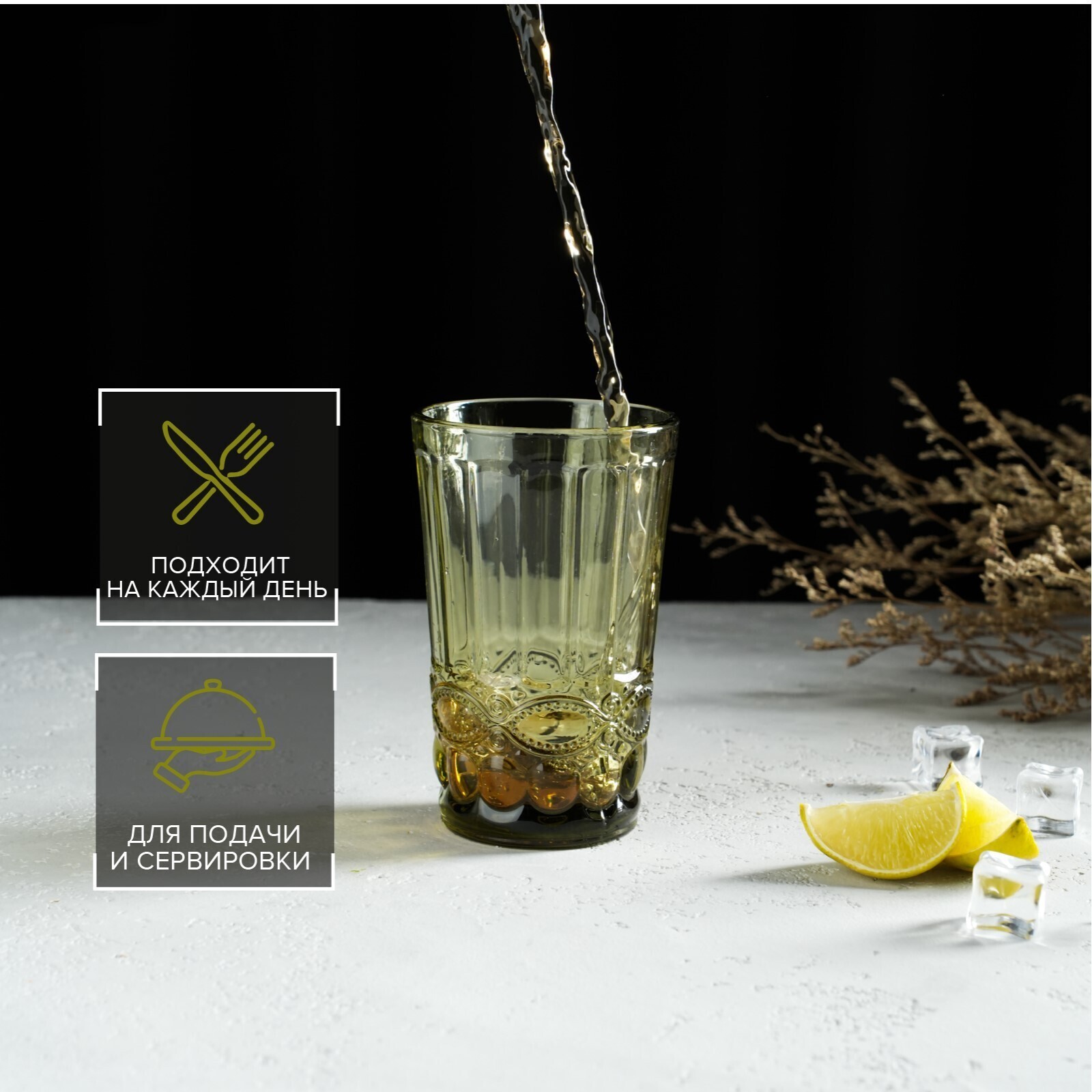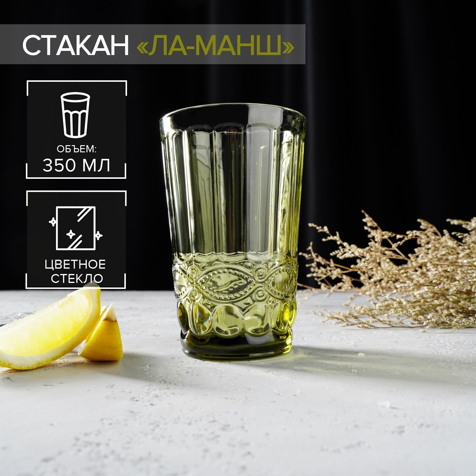 Стакан стеклянный Magistro «Ла-Манш», 350 мл, 8×8×12,5см, цвет зелёный