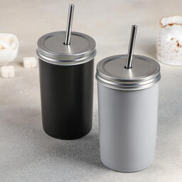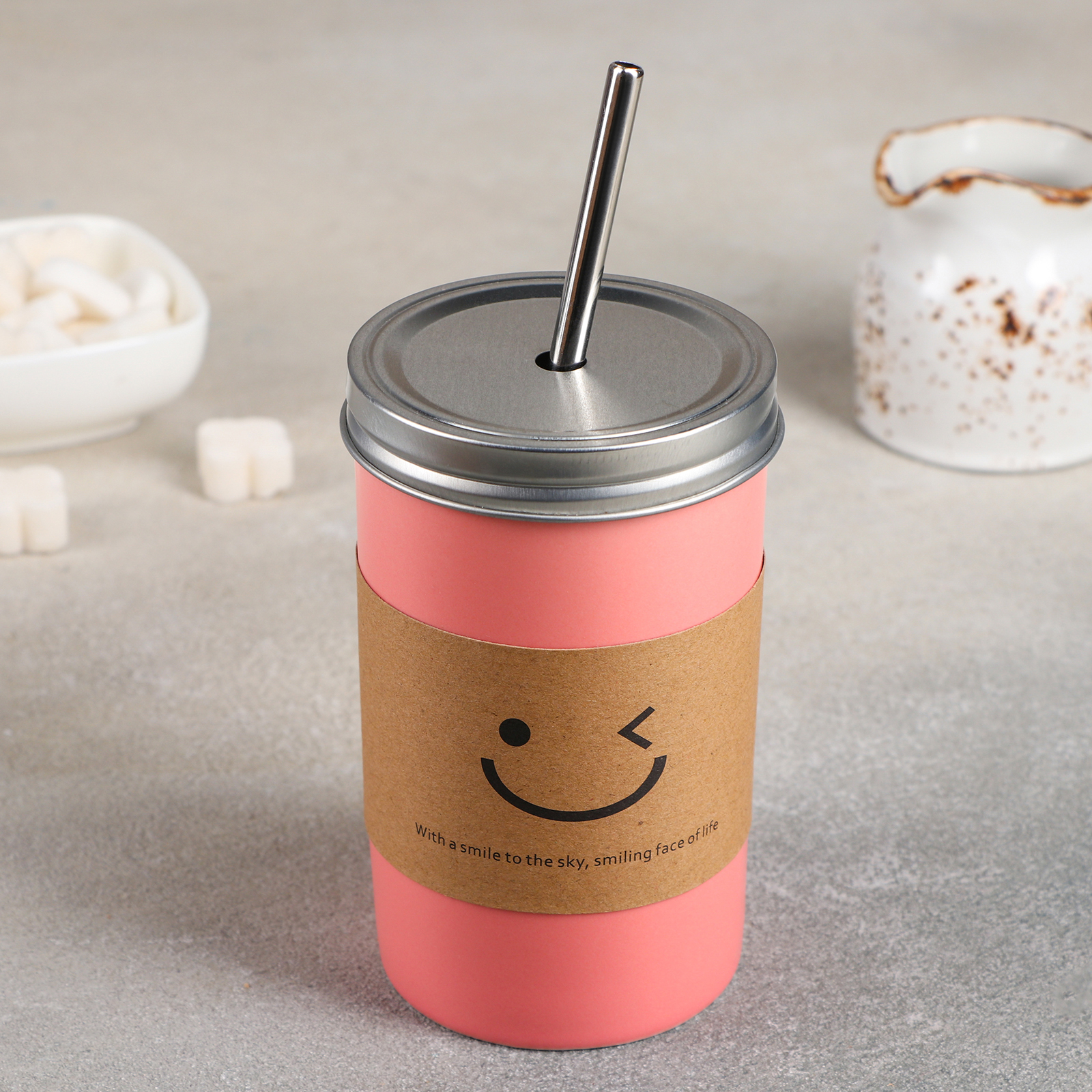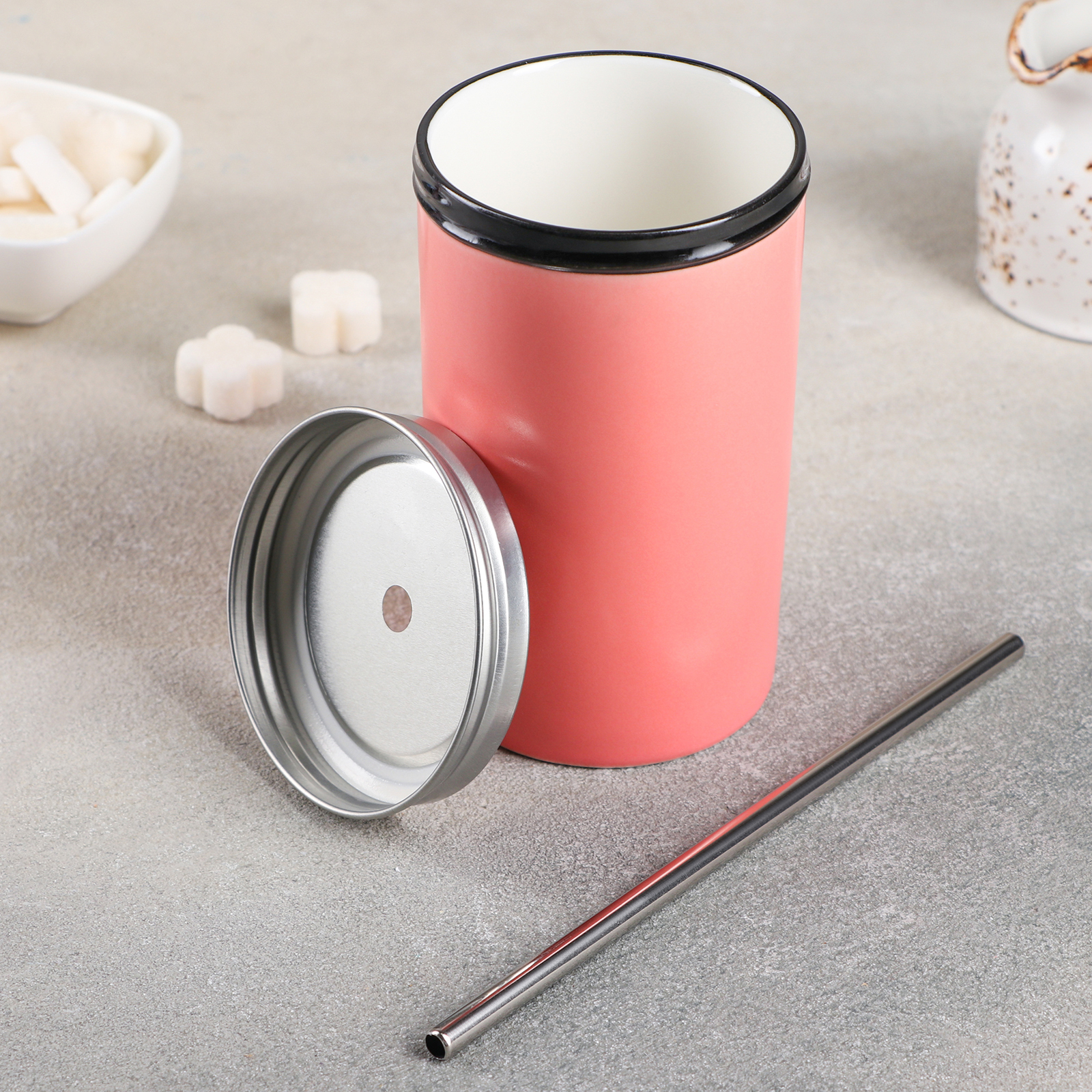 Стакан керамический «Хорошее настроение», 450 мл, с крышкой и трубочкой, цвет МИКС