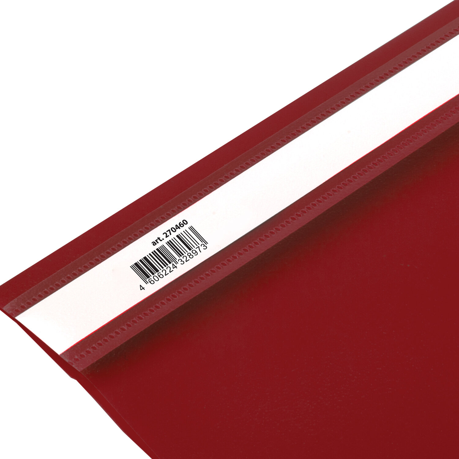 Описание товара 270460, (цена за 25 шт.) Скоросшиватель пластиковый МАЛОГО ФОРМАТА (160х22 8мм), А5, BRAUBERG, 130/180 мкм, красный, 270460